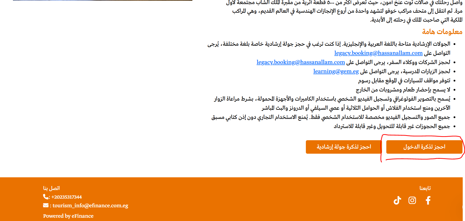 - بمجرد الدخول إلى الموقع المذكور أعلاه، انقر على خيار “احجز تذكرة الدخول”،