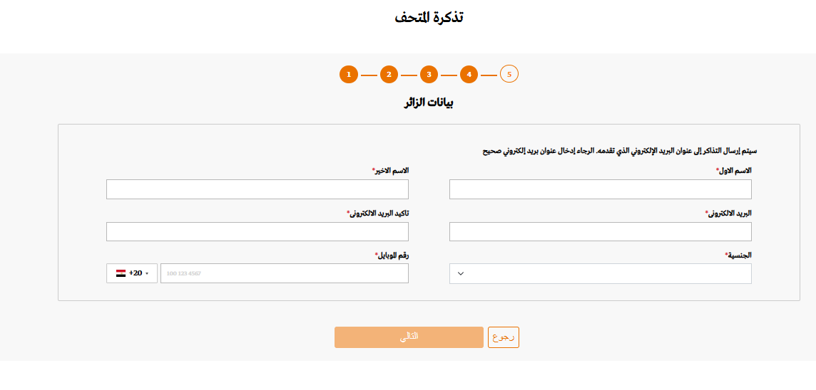 - في الخطوة التالية، بعد اختيار نوع التذكرة، سطلب منك إدخال بعض البيانات الشخصية مثل الاسم الكامل، رقم الهاتف، والبريد الإلكتروني، هذه البيانات ضرورية لإتمام عملية الحجز.