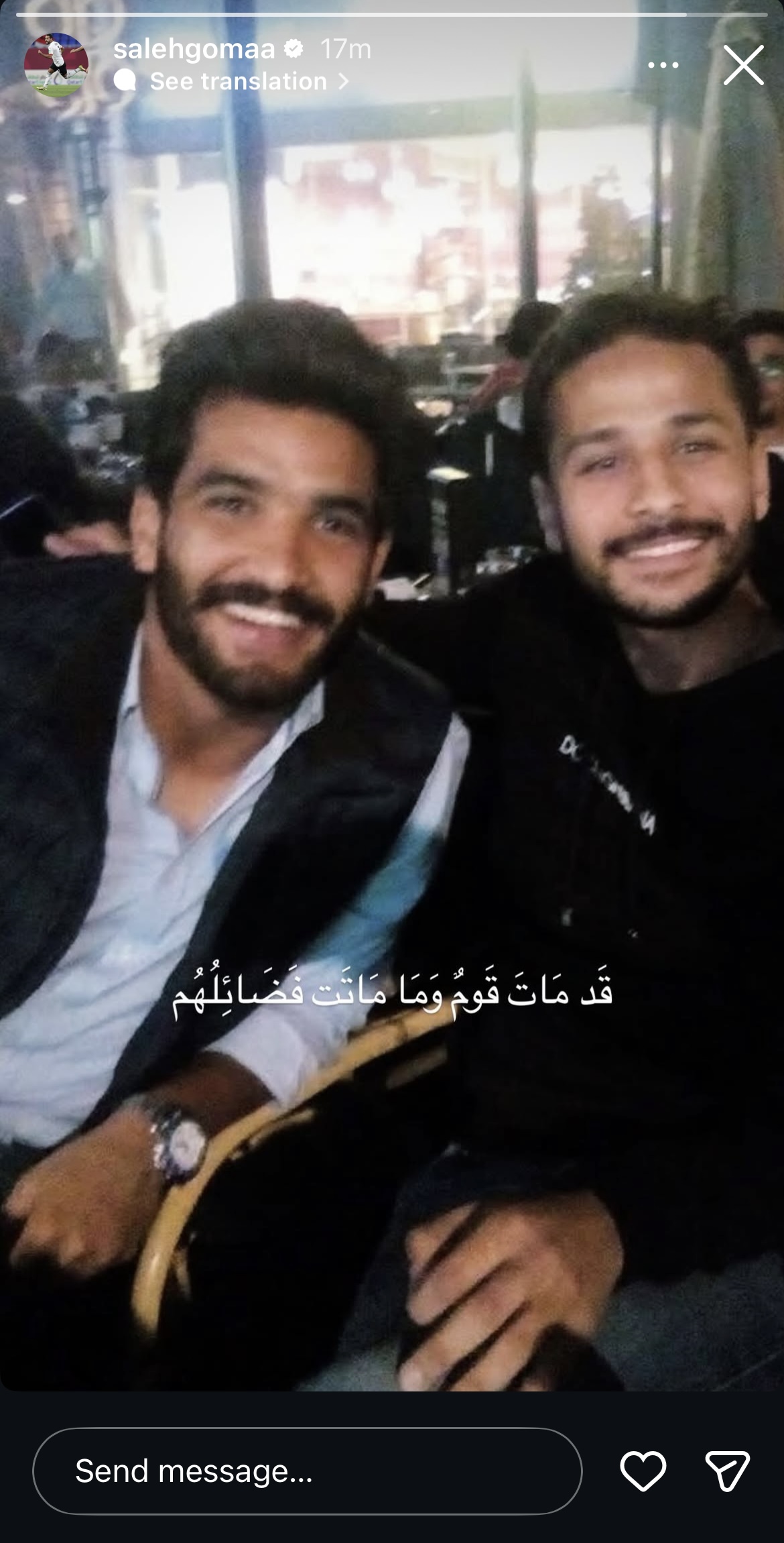 وعلق صالح جمعة على الصورة، وكتب: “قد مات قوم وماتت فضائلهم ”.