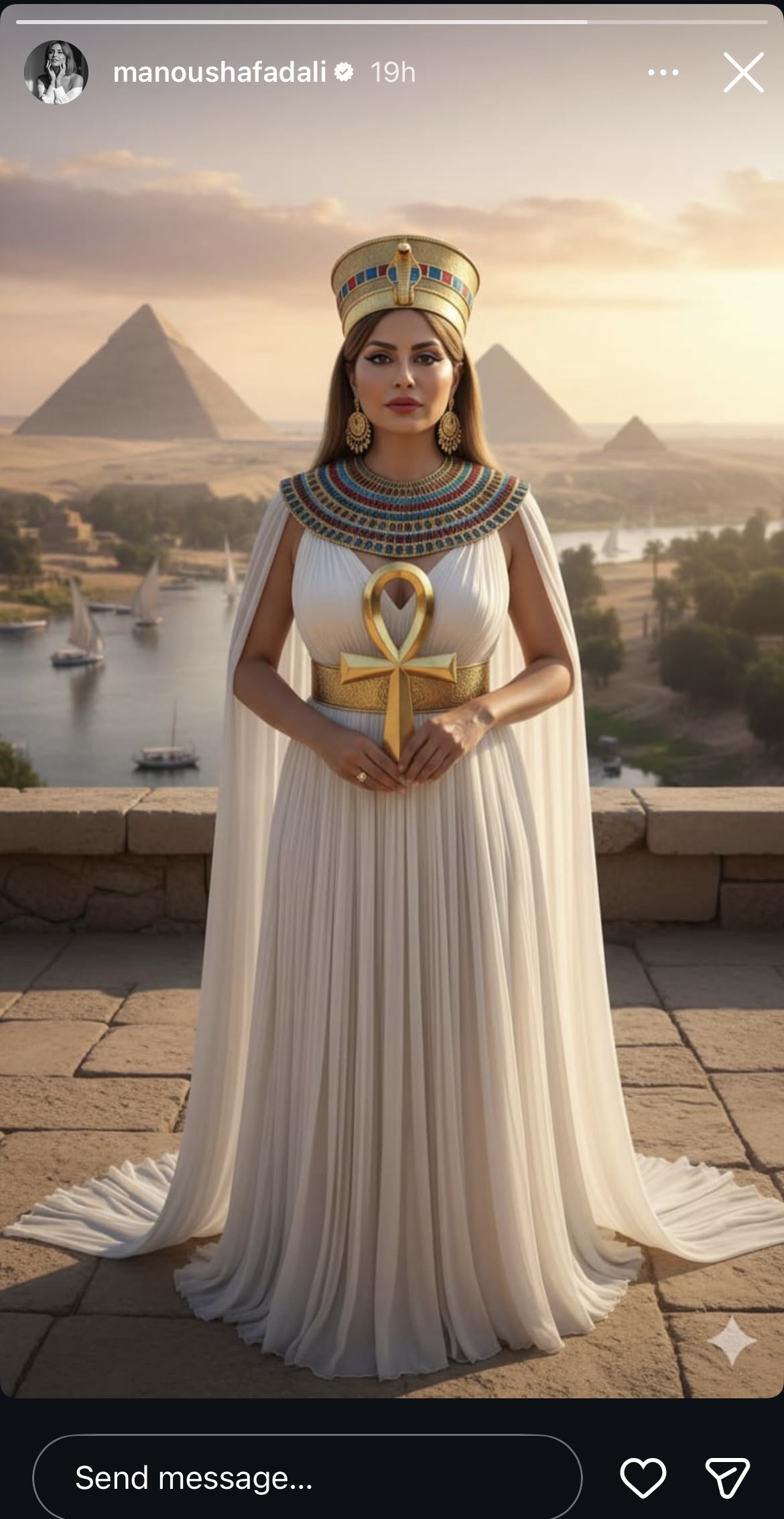 شاركت الفنانة منة فضالي، في تريند صور الذكاء الاصطناعي بالزي الفرعوني تزامنا مع افتتاح المتحف المصري الكبير.