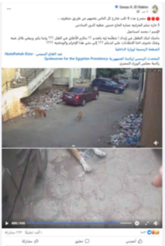 وبالفحص أمكن تحديد وضبط الشخص الظاهر بمقطع الفديو (موظف - مقيم بالشرابية بالقاهرة)، وبمواجهته قرر بمداومته على تقديم بقايا الطعام للكلاب ولا يعلم عدم صلاحيتها وعما إذا كانت قد تسببت فى إعيائهم أو تعرضهم للوفاة وتم إتخاذ الإجراءات القانونية.