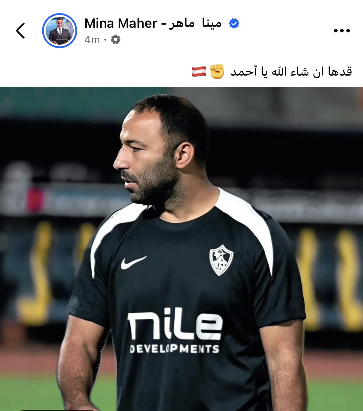 وكتب مينا ماهر عبر حسابه الشخصي بموقع فيسبوك: “قدها إن شاء الله يا أحمد”.