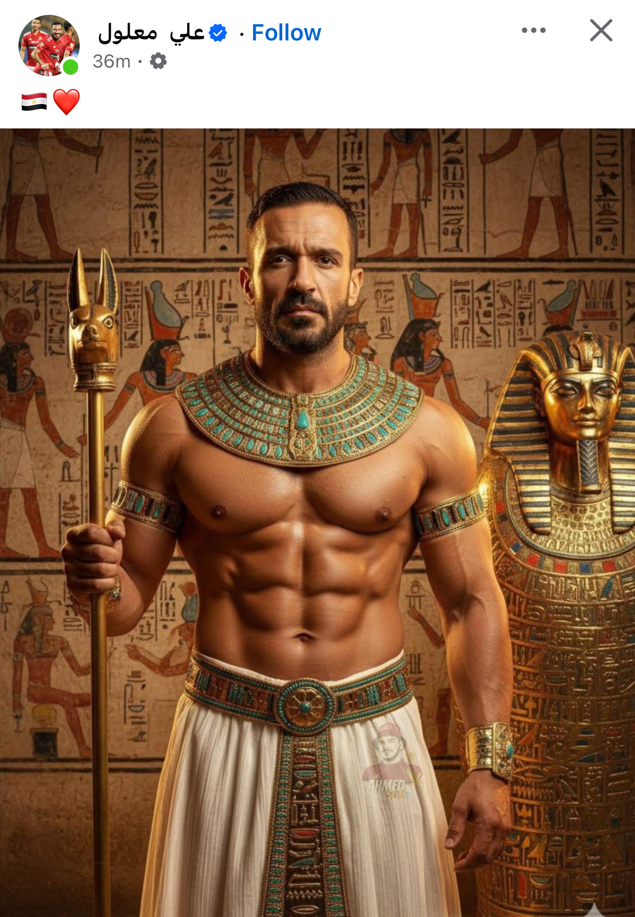 شارك التونسي علي معلول صور له بالزي الفرعوني على تريند الذكاء الاصطناعي عبر حسابه الشخصي على فيسبوك، بالتزامن مع افتتاح المتحف المصري الكبير.