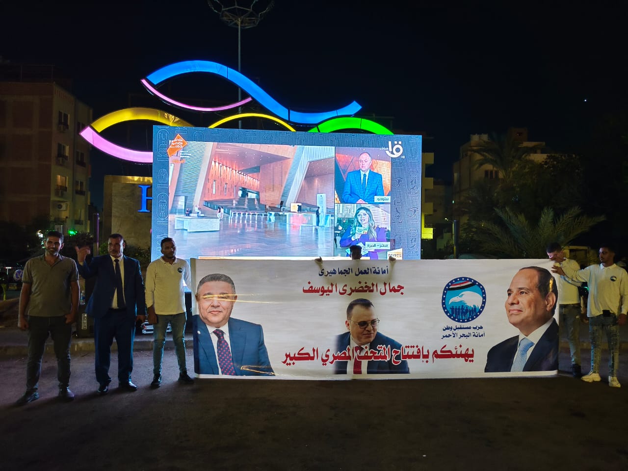 في مشهد وطني مهيب يعكس فخر المصريين بحضارتهم العريقة، نظم حزب مستقبل وطن بمحافظة البحر الأحمر فعاليات احتفالية كبرى بمناسبة الافتتاح التاريخي للمتحف المصري الكبير، وذلك من خلال عرض الحدث عبر شاشات عرض ضخمة نُصبت في الشوارع والميادين العامة بمختلف مدن المحافظة، وسط إقبال جماهيري واسع من المواطنين الذين توافدوا للاحتفال بهذا الإنجاز المصري الفريد.