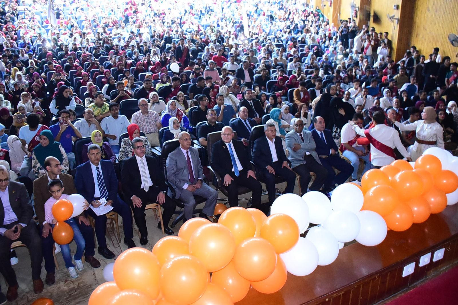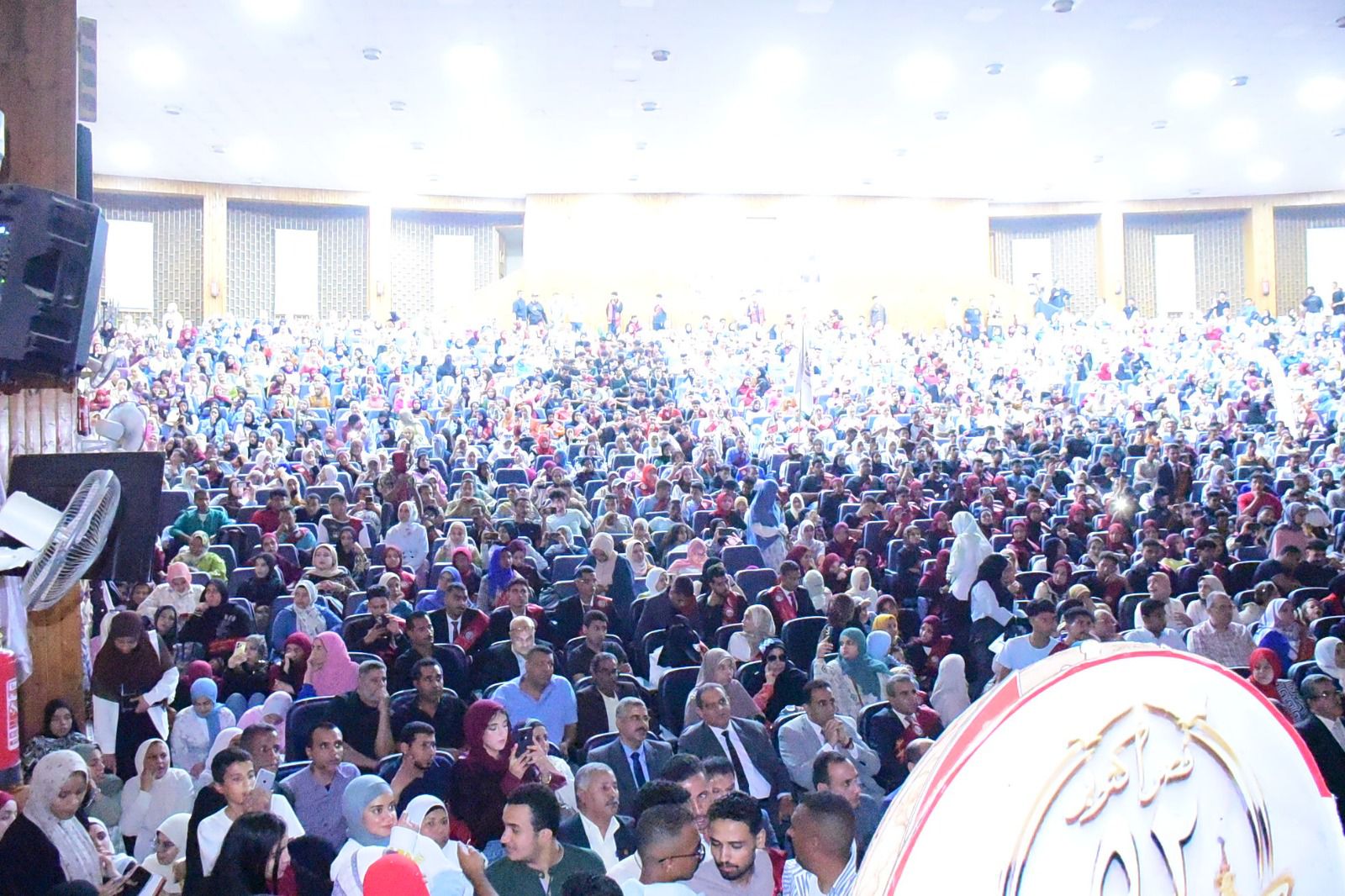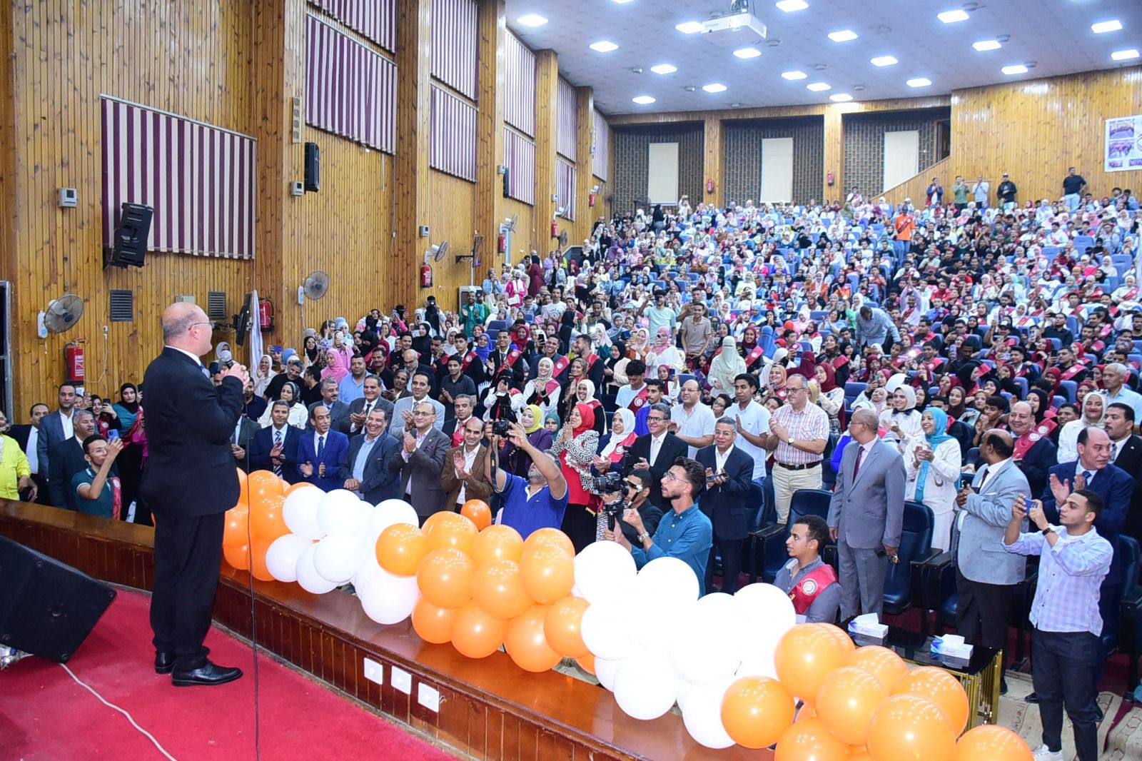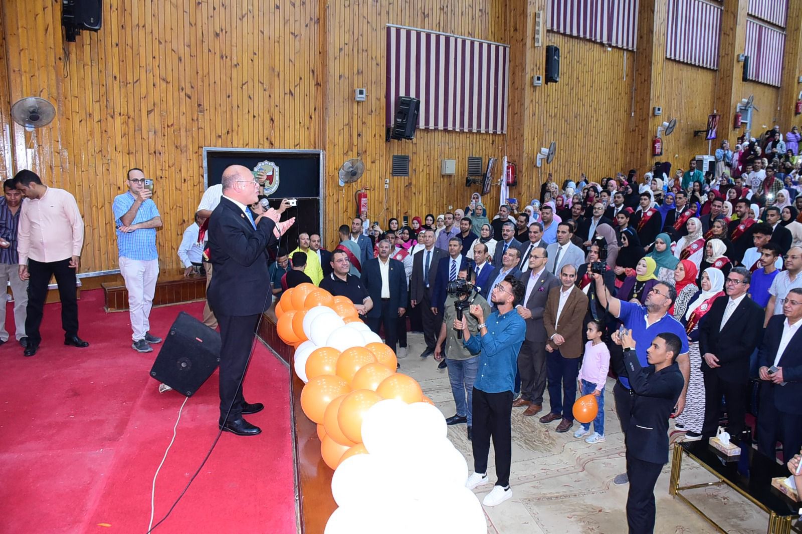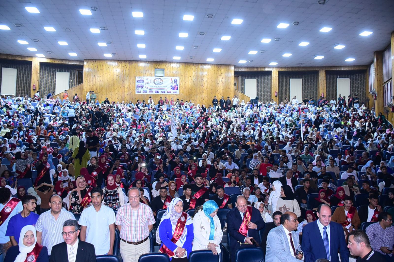 وسط حضور كثيف من أعضاء هيئة التدريس والطلاب وعدد من القيادات الأكاديمية والجهاز الاداري، بقاعة المؤتمرات الكبري بالحرم الجامعي القديم.