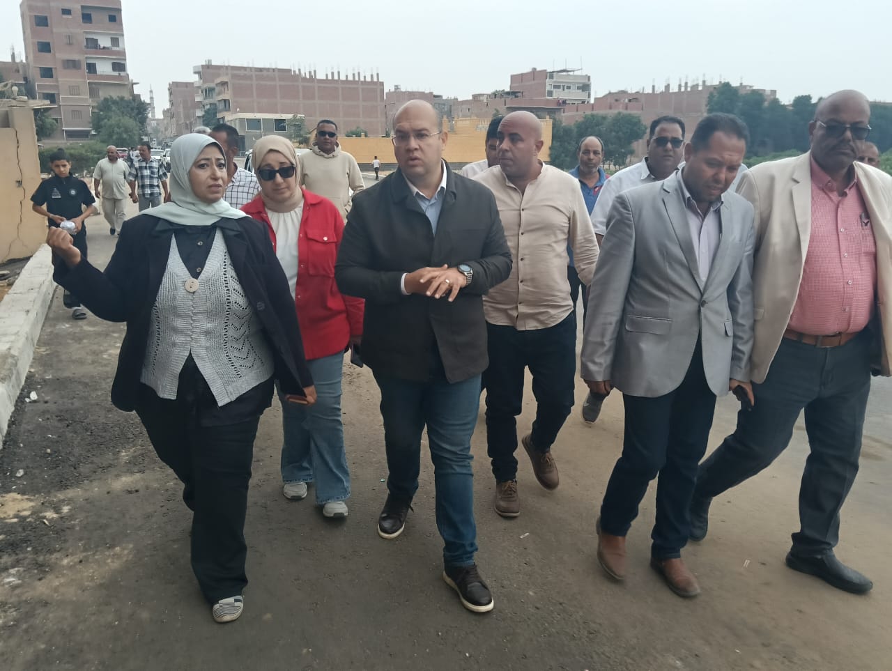 رافق نائب المحافظ خلال الجولة محمود حسين رئيس مركز أوسيم ورمضان عبد الرحمن رئيس حي المنيرة الغربية والمهندسة نجوى السعيد مدير مديرية الطرق بالمحافظة والمهندس محمد نصحي مديرية الطرق بالمحافظة و مسؤولي شركات مياة الشرب والصرف الصحي بالجيزة و الكهرباء والشركات المنفذة بالاعمال.