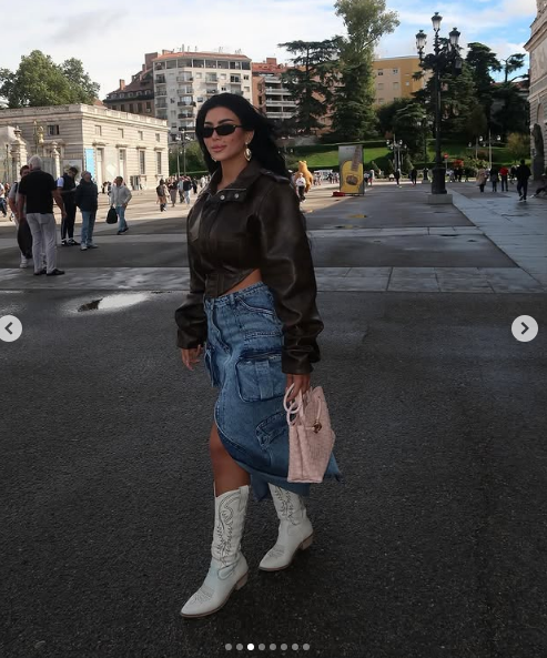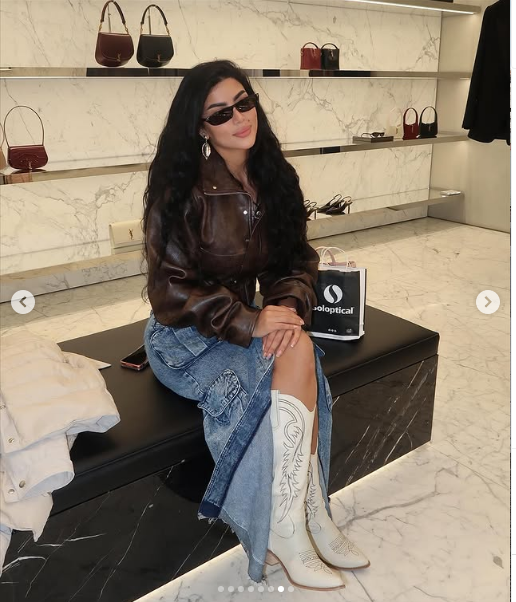خطفت كارولين عزمي الأنظار بإطلالة ملفتة، حيث ارتدت جيب جينز فاتح مع جاكت قصير جلد باللون البني.