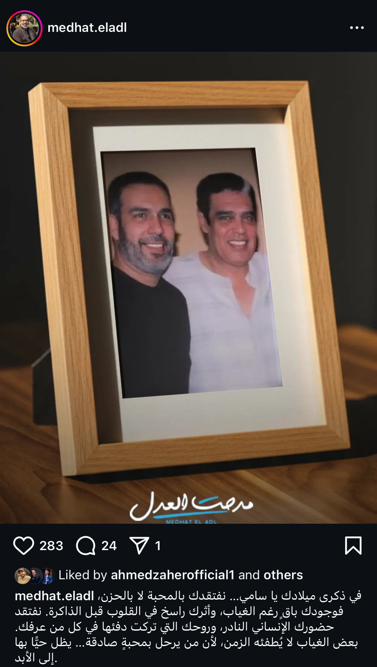 وكتب العدل عبر حسابه الشخصي بموقع إنستجرام: "في ذكرى ميلادك يا سامي، نفتقدك بالمحبة لا بالحزن، فوجودك باقٍ رغم الغياب، وأثرك راسخ في القلوب قبل الذاكرة.