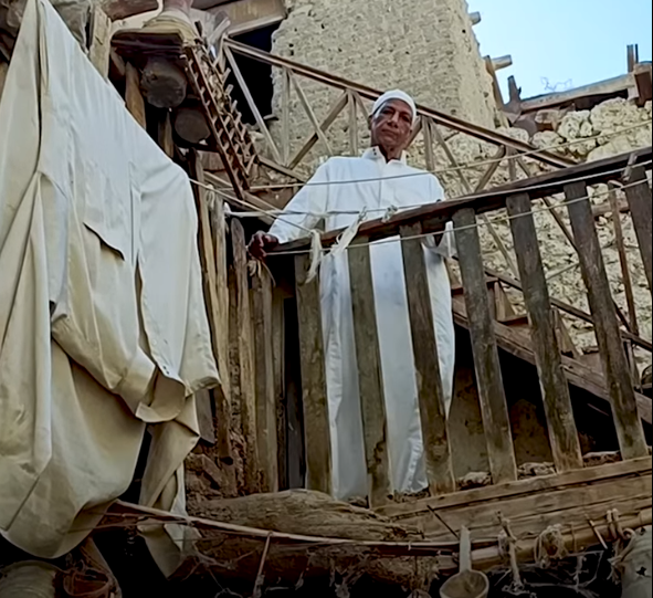 ثلاثة طوابق تتعالى فوق فناء مركزي، غرف متعددة الاستخدام، “مقعد” واسع لاستقبال الضيوف والمسافرين، مخازن ومناور حركة هواء، وشرفات خشبية بارزة تواجه الشمس وتحتوي الضوء. وهو يربت على المفتاح النحاسي الكبير قائلاً بابتسامة: «الأبواب القديمة لا تُفتح بالقوة، بل بالمعرفة. لكل خشبة هنا ذاكرة».