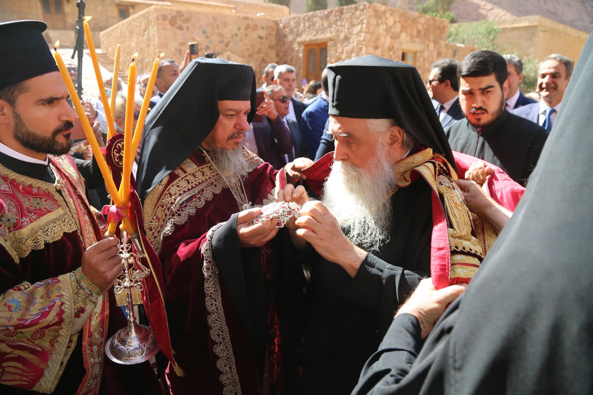 وأبرز التجليس الأهمية الروحية والتاريخية للدير وعمق العلاقات المصرية اليونانية، حيث شهد الاحتفالات حضور رفيع المستوى، ضم كيرياكوس ميتسوتاكيس رئيس وزراء اليونان، وجورجيوس جيرابيتريتيس وزير الخارجية اليوناني، ونيقولاوس باباجيورجيو السفير اليوناني بمصر، إضافة إلى الأنبا أنطونيوس مطران القدس والكرسي الأورشليمي للروم الأرثوذكس، ولفيف من رجال الدين من مصر واليونان.