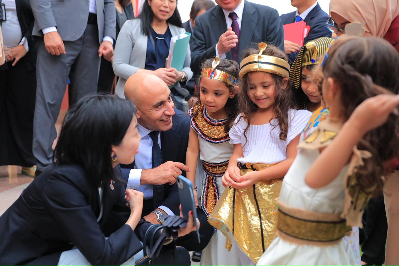 كما التقط الوزير محمد عبد اللطيف وسمو الأميرة أكيكو ورئيس الجايكا والسفير الياباني صورًا تذكارية مع الطلاب الذين ارتدوا الزي الفرعوني، وأعضاء الوفد الياباني وأعضاء هيئة التدريس وإدارة المدرسة، وسط أجواء مفعمة بالود والإعجاب بالتجربة التعليمية المشتركة.