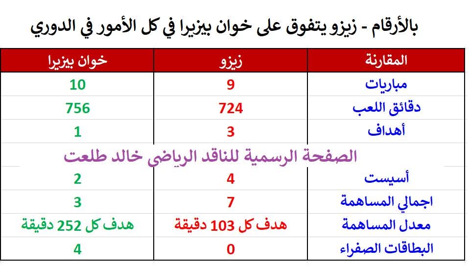 وكتب خالد طلعت، عبر صفحته على موقع التواصل الاجتماعي فيسبوك: "فيه زملكاوية كتير بيقولوا إن زيزو مقدمش أي حاجة للأهلي ، وفي نفس الوقت شايفين إن خوان بيزيرا أسطورة وعامل أداء عالمي مع الزمالك، بس الأرقام بتقول غير كده خااااااااااااالص".