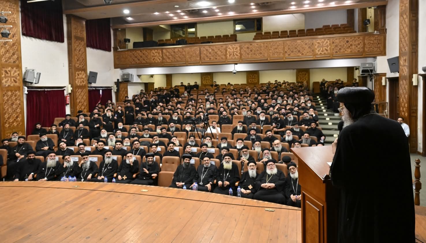 وفي كلمته، تحدث قداسة البابا عن "وزنات في حياة الإكليروس"، مؤكدًا أن الأبوة هي سر نجاح ودوام الكنيسة، موضحًا خمس وزنات للكاهن: التكريس، الأبوة، الوقت، التوبة، الخدمة، كما قدم الشكر للجميع ووزع هدايا تذكارية على الحضور.