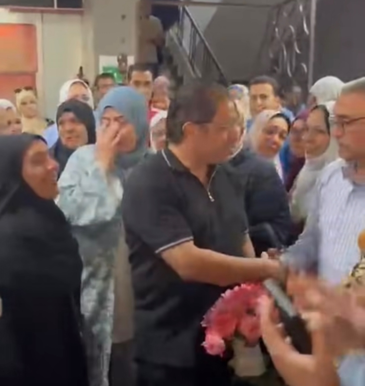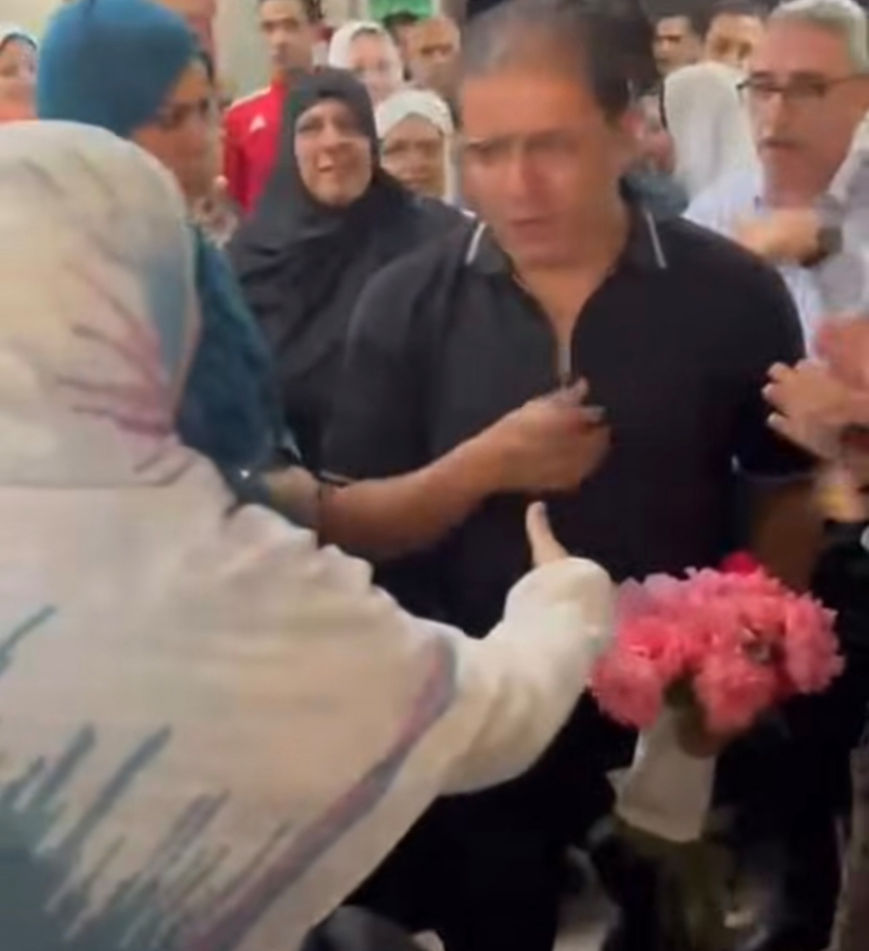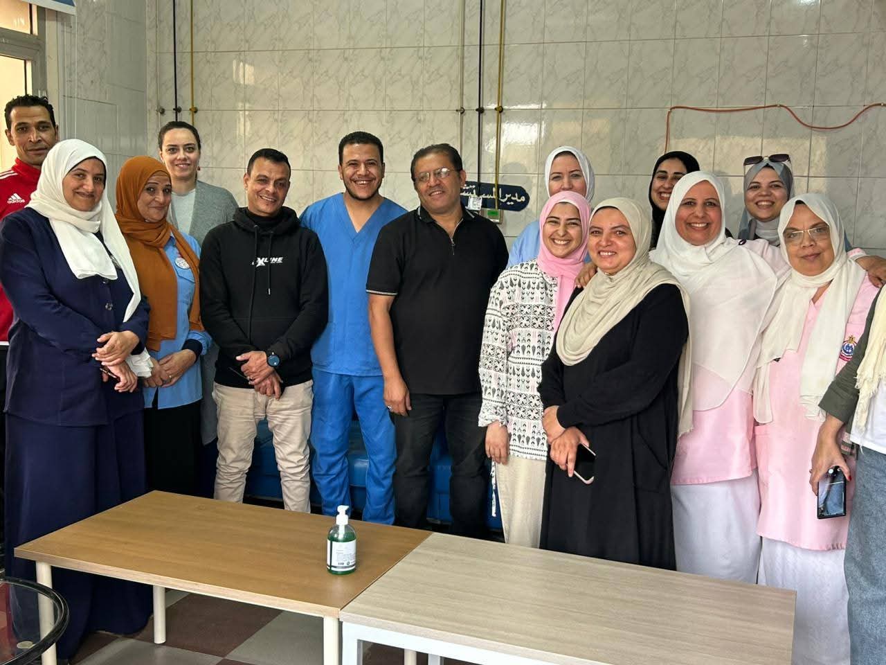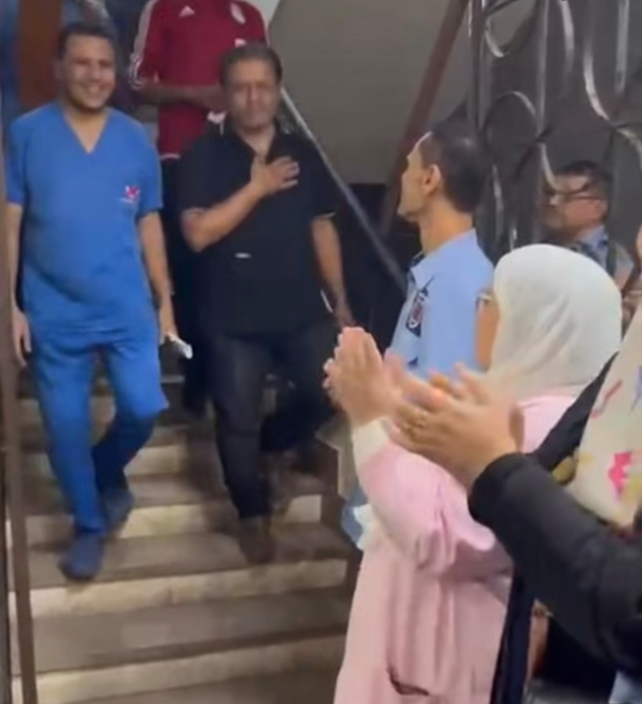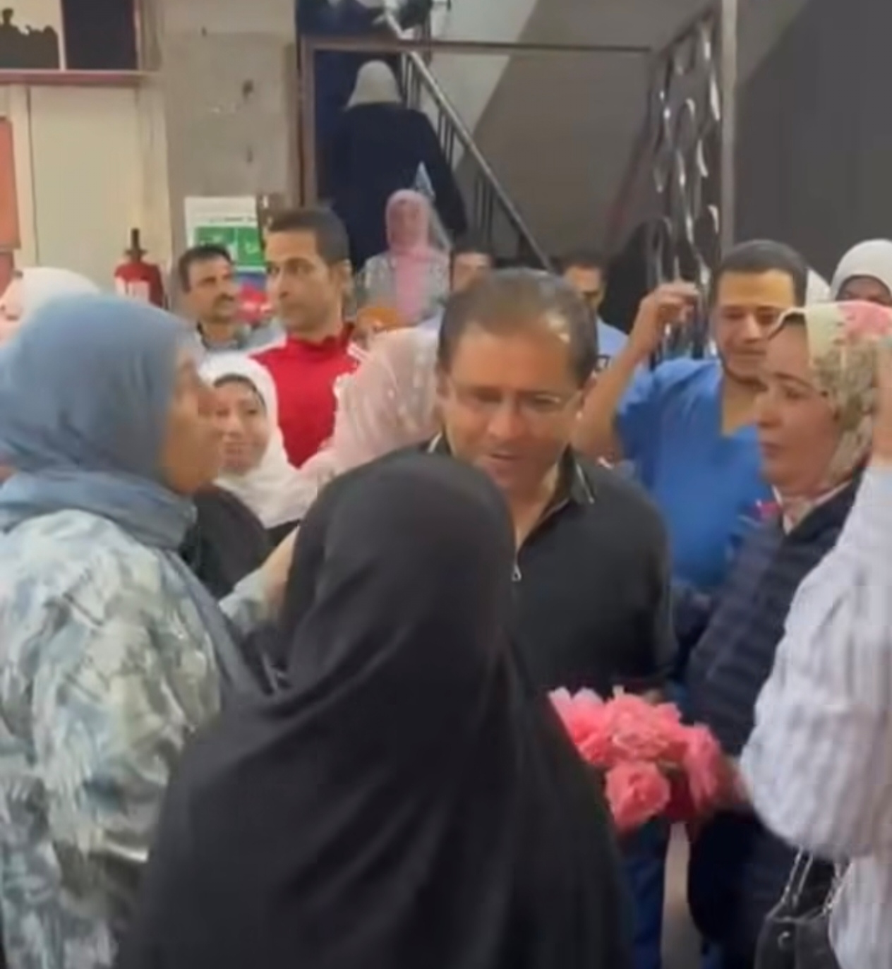 وقام العاملون بالمستشفى بعمل ممر شرفي بالورود والدموع اثناء نزول الدكتور احمد السرسي مدير مستشفى سرس الليان.