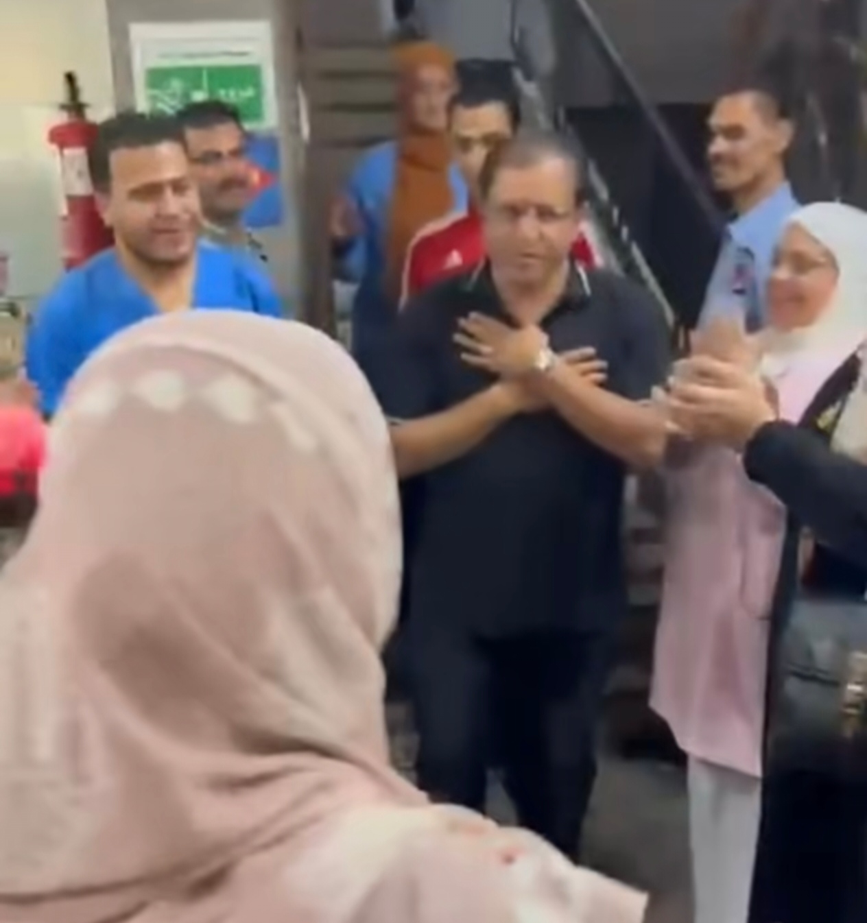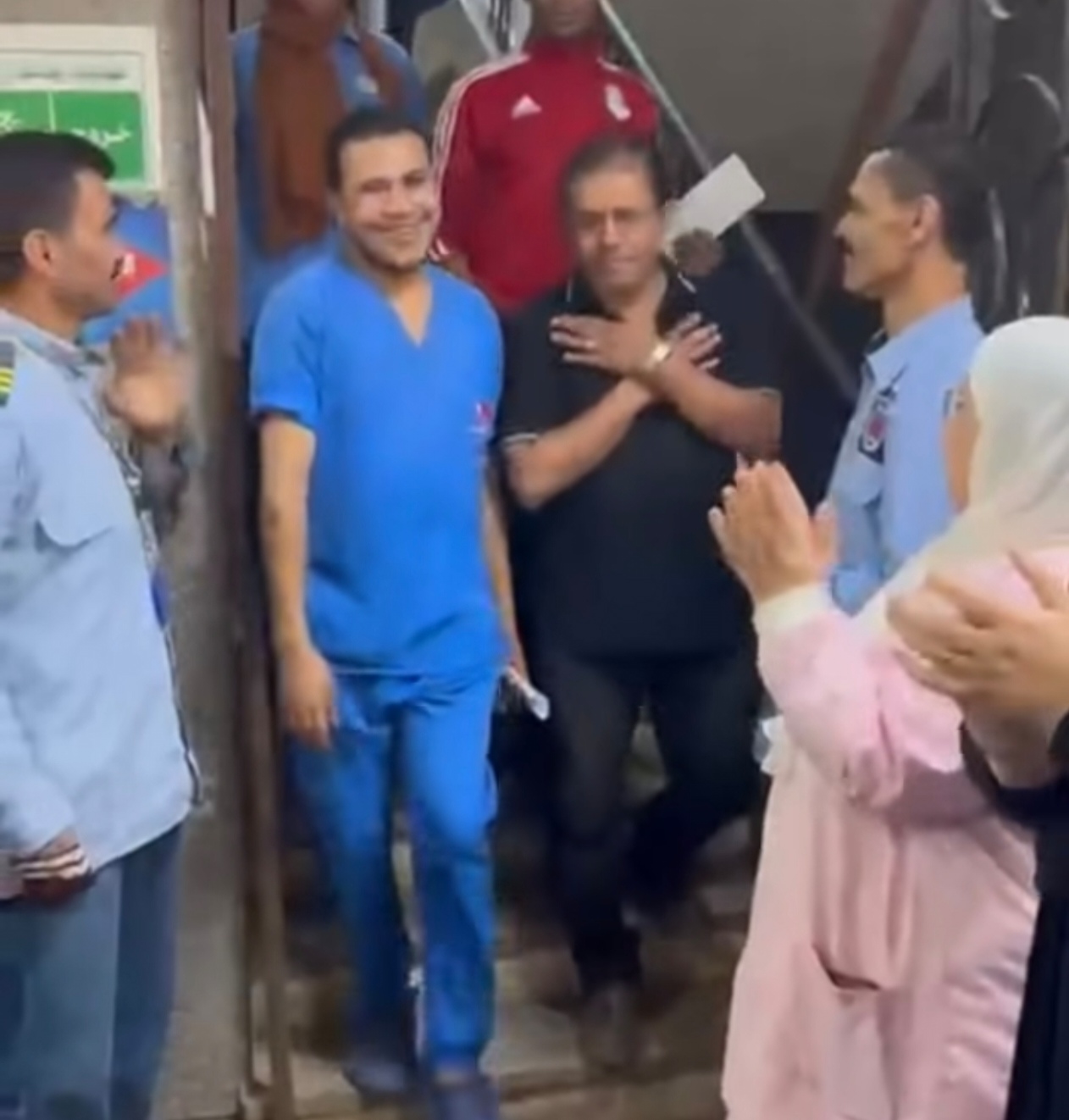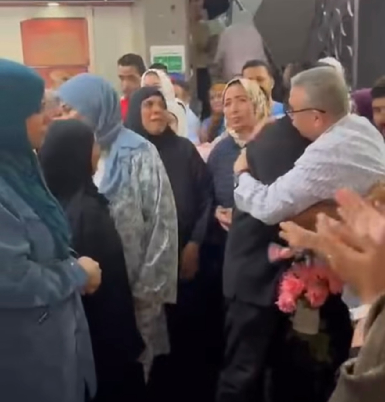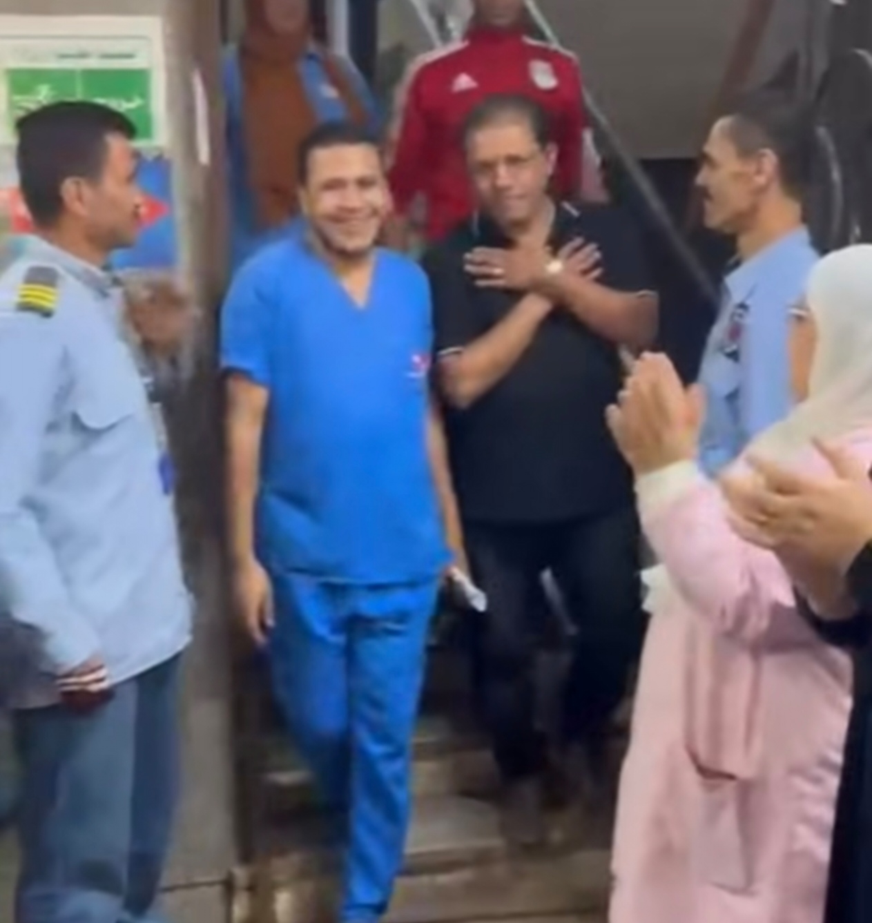 ولم يتمالك مدير المستشفى دموعه اثناء توديعه من العاملين بالمستشفي وانهاء إجراءات عمله.