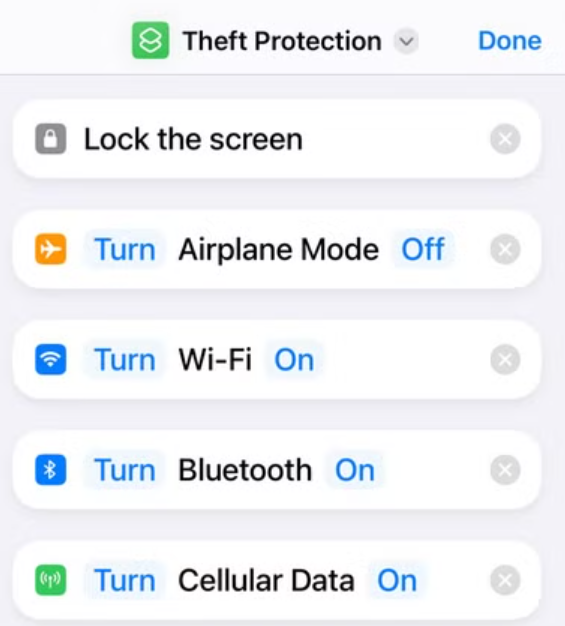 لحماية هاتفك بشكل إضافي، يمكنك استخدام اختصار في تطبيق Shortcuts يسمى “حماية ضد السرقة”، هذا الاختصار يتيح لك تعطيل وضع الطيران تلقائيا وقفل الشاشة بمجرد أن يحاول السارق تفعيل وضع الطيران، مما يمنعهم من الوصول إلى بياناتك.