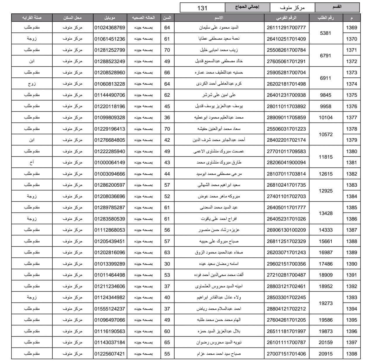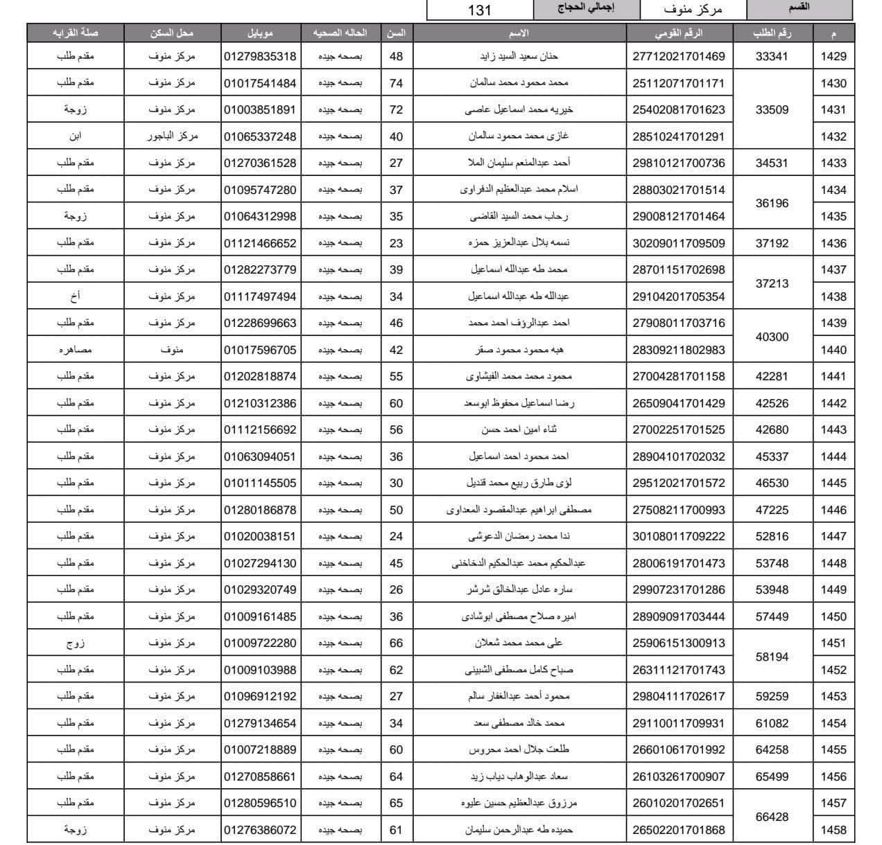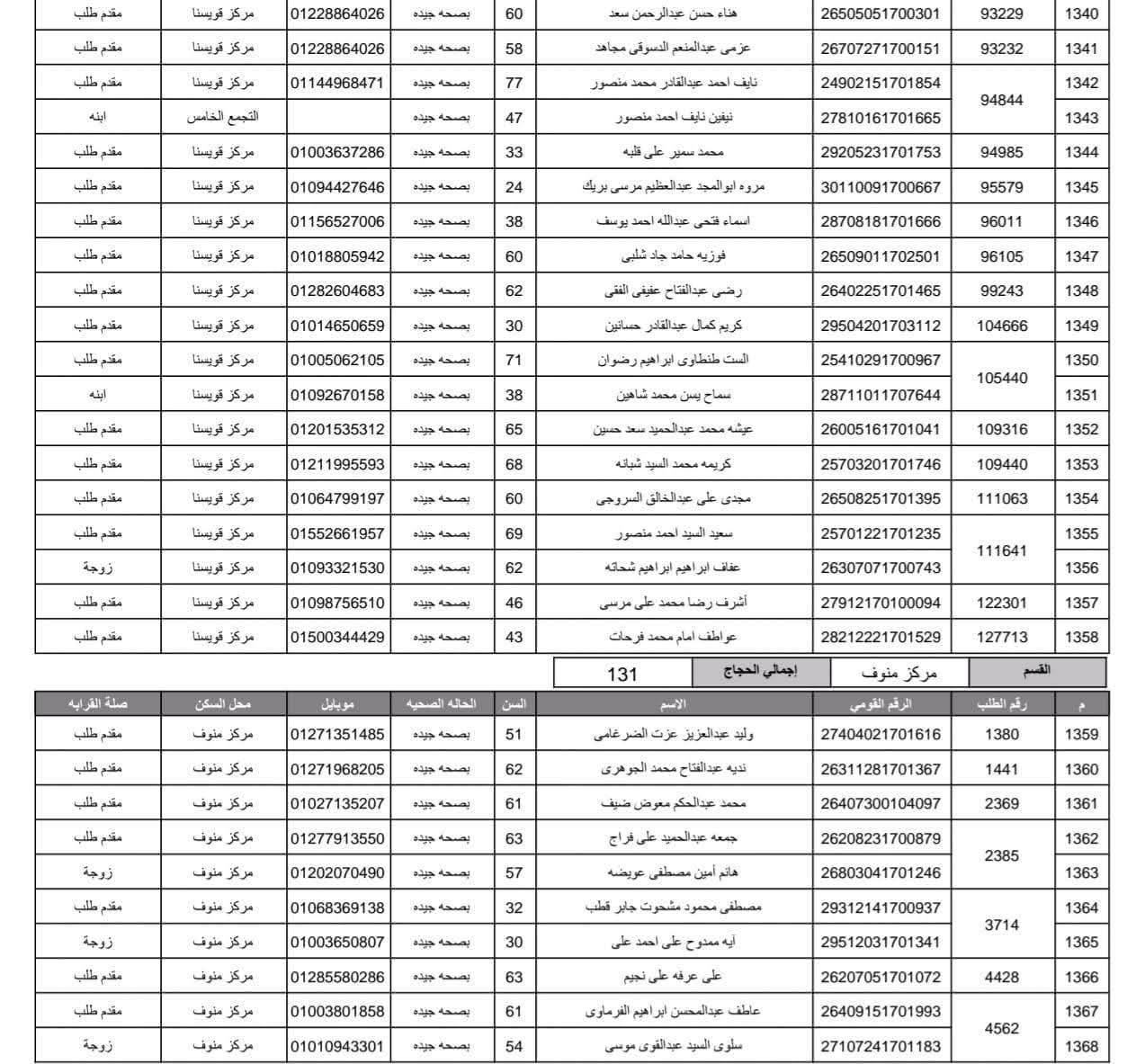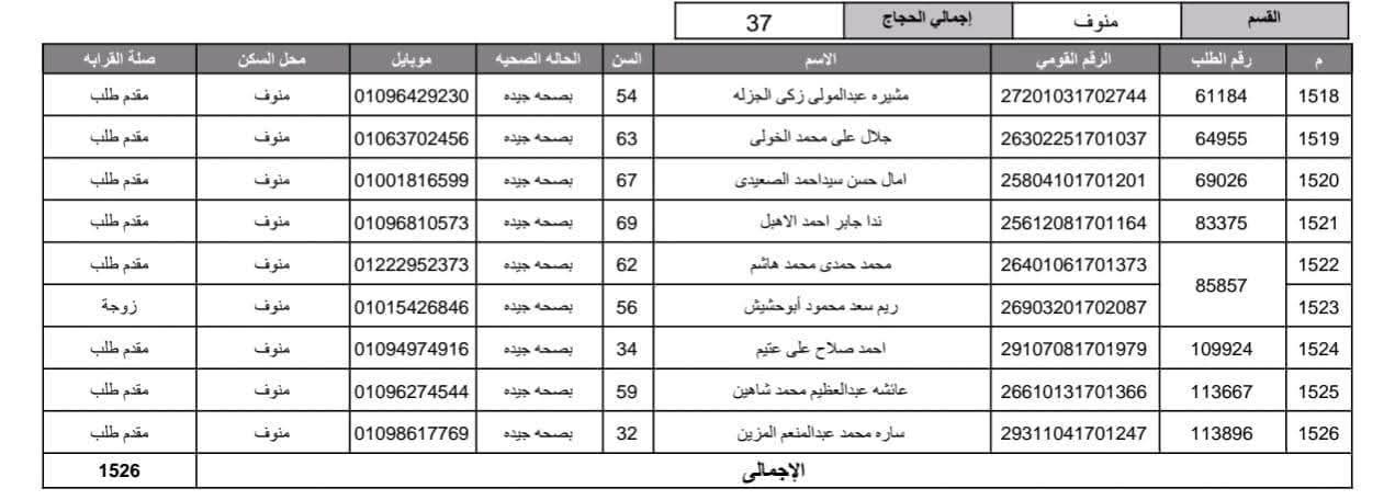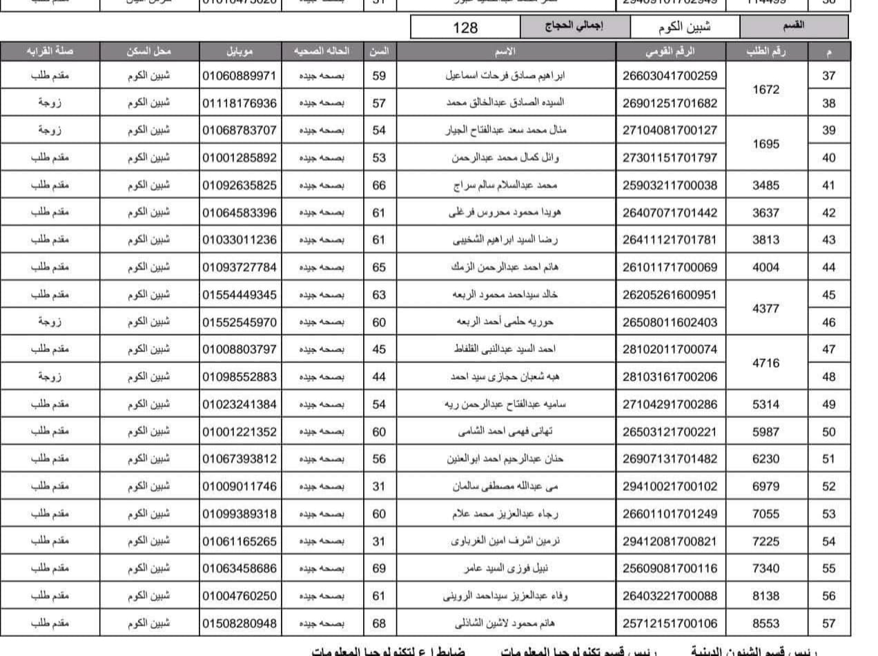 أعلنت مديرية أمن المنوفية الفائزين في قرعة الحج العلنية وذلك عقب اجراء القرعة العلنية في استاد شبين الكوم بالصالة المغطاة.