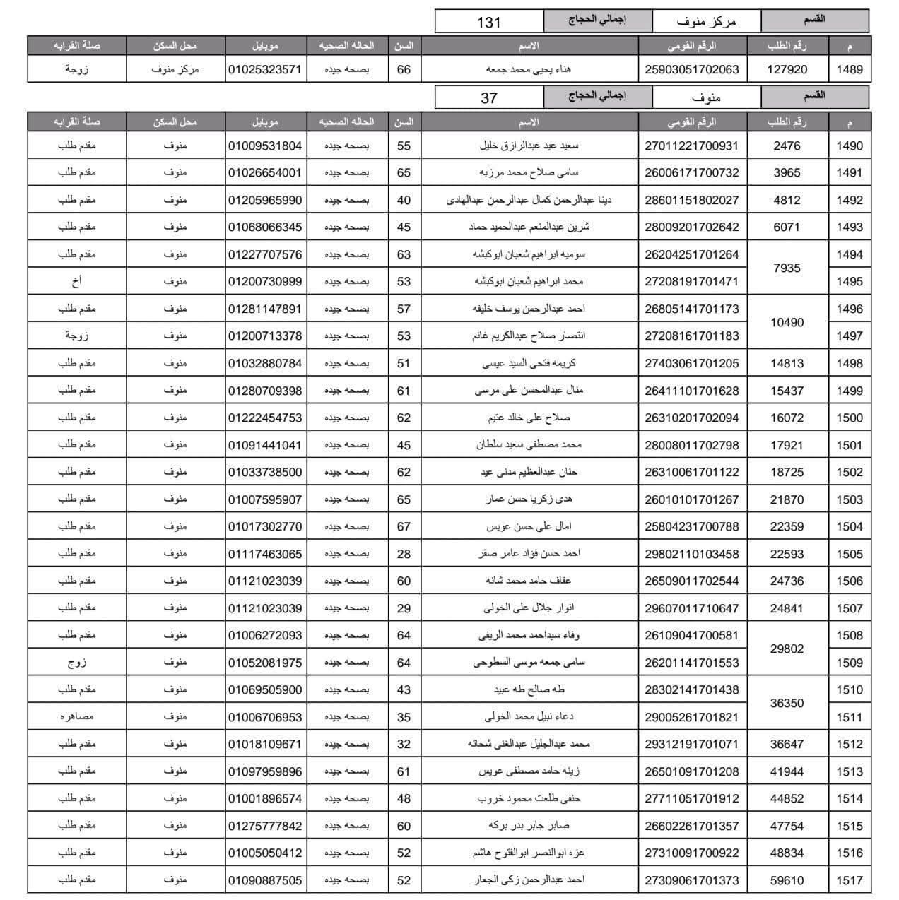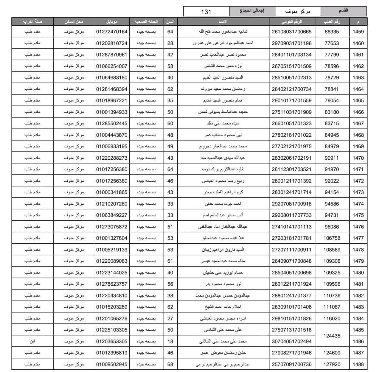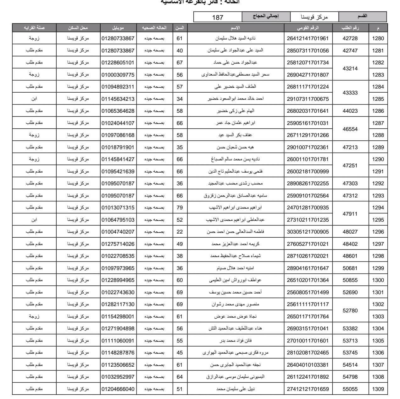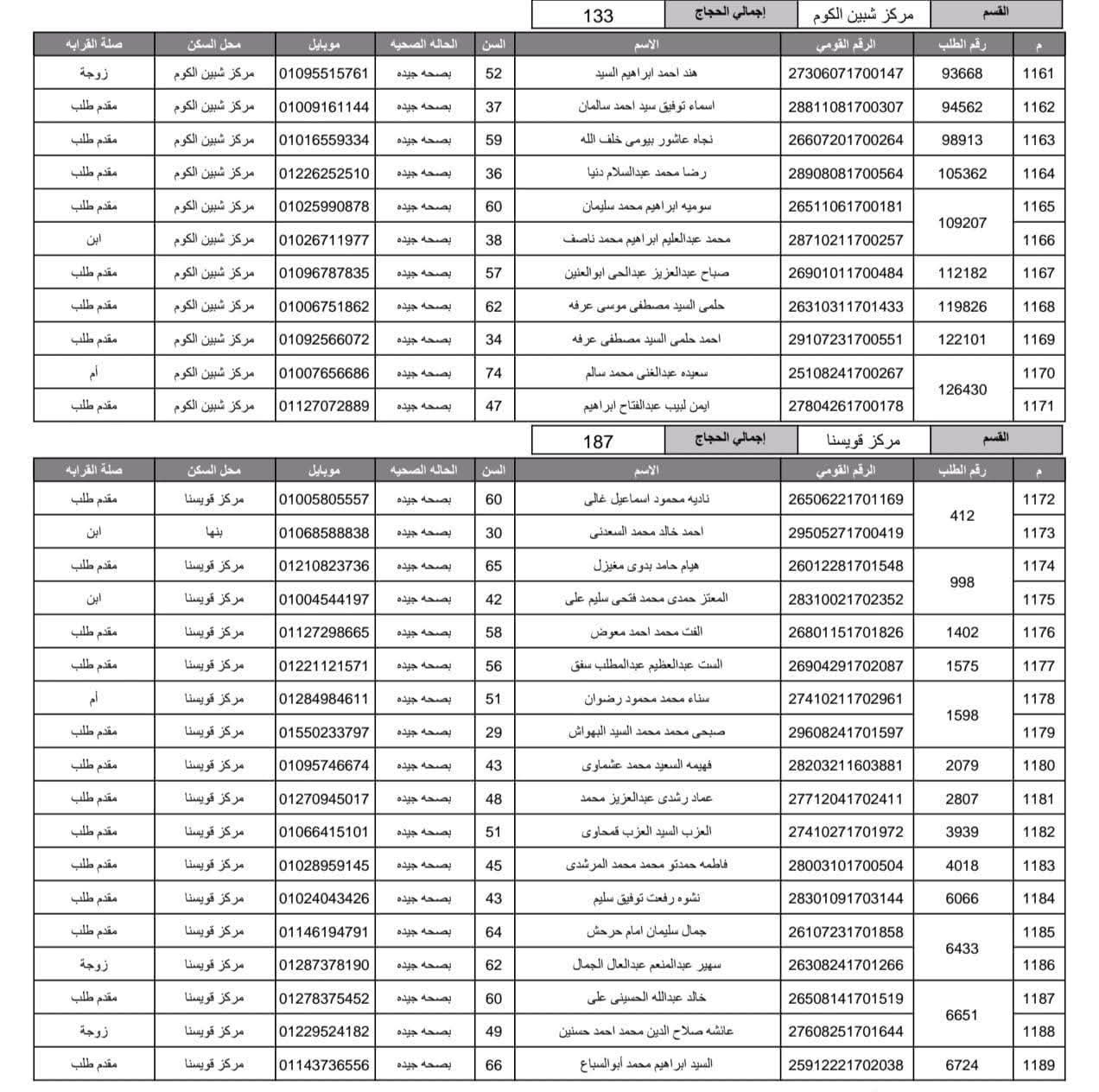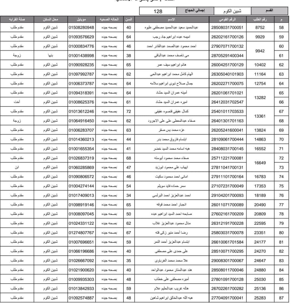 أعلنت مديرية أمن المنوفية الفائزين في قرعة الحج العلنية وذلك عقب اجراء القرعة العلنية في استاد شبين الكوم بالصالة المغطاة.