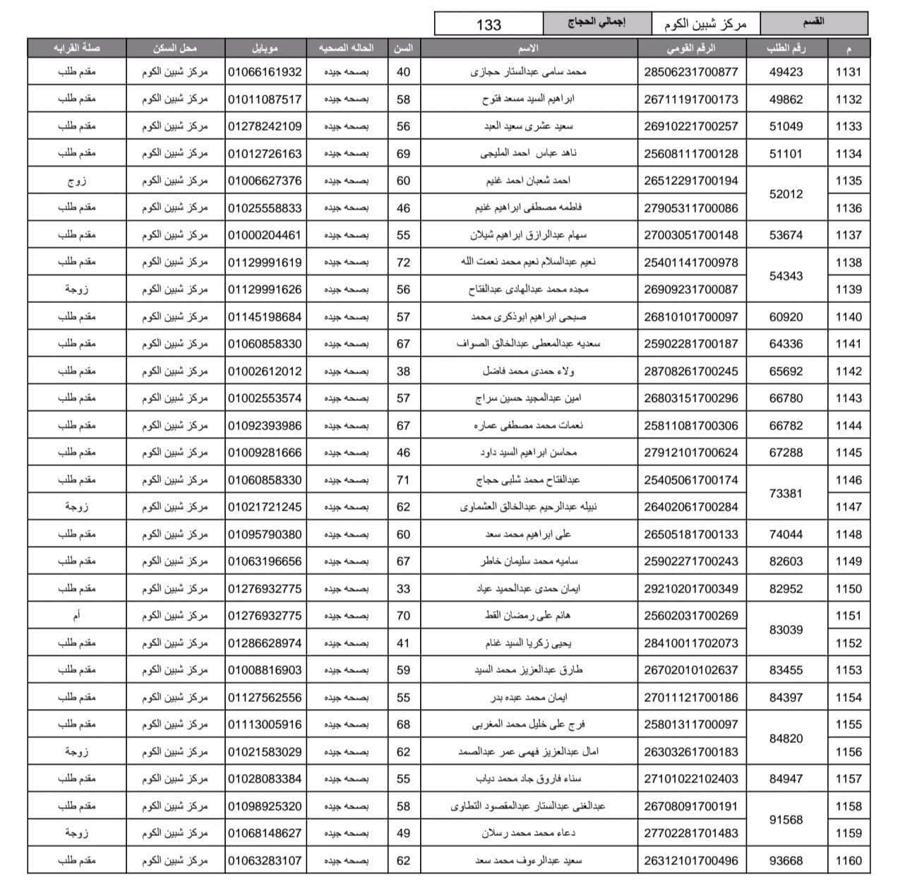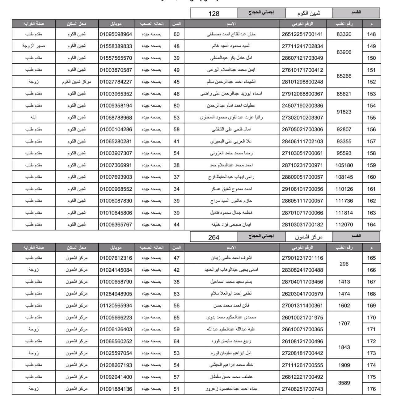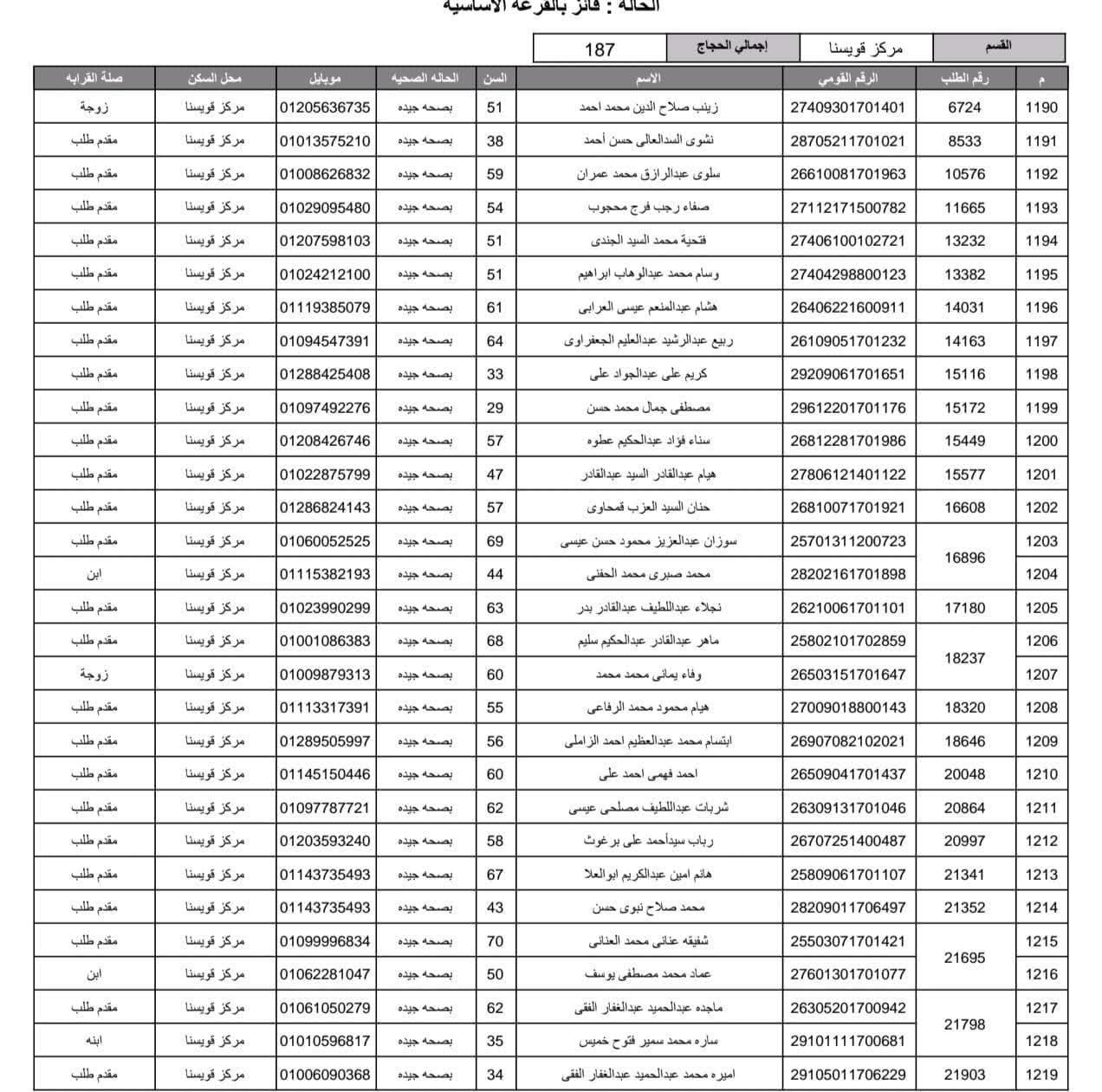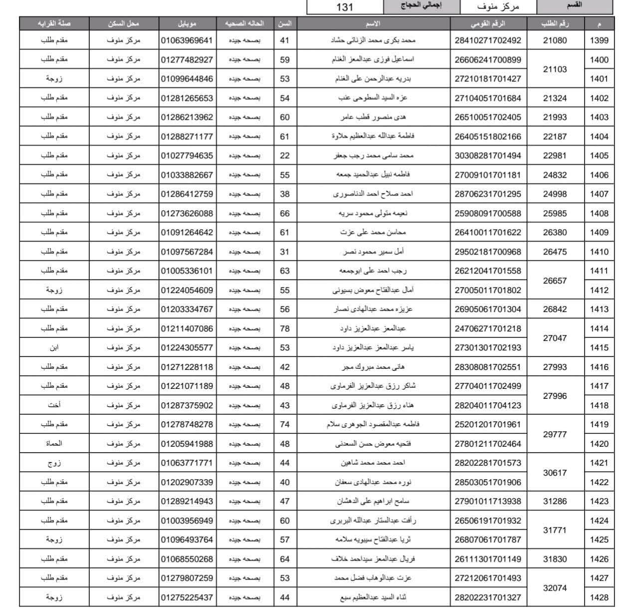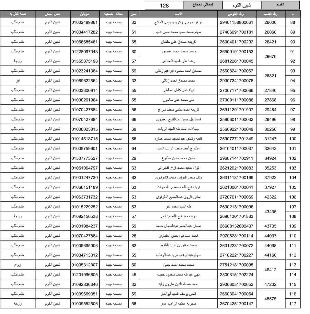 أعلنت مديرية أمن المنوفية الفائزين في قرعة الحج العلنية وذلك عقب اجراء القرعة العلنية في استاد شبين الكوم بالصالة المغطاة.