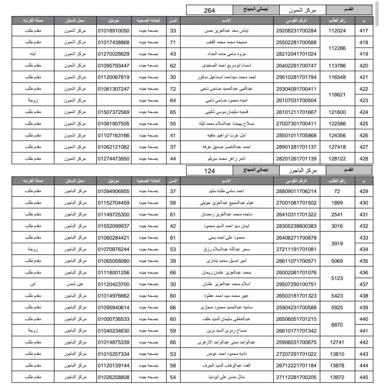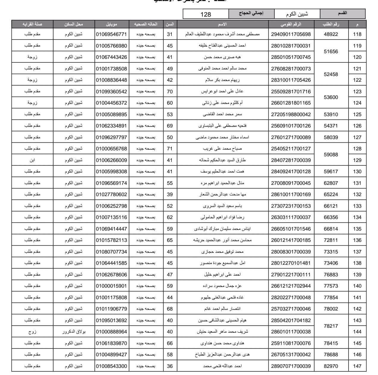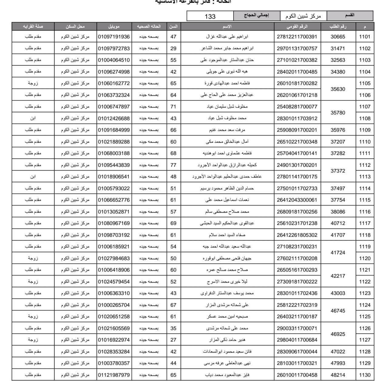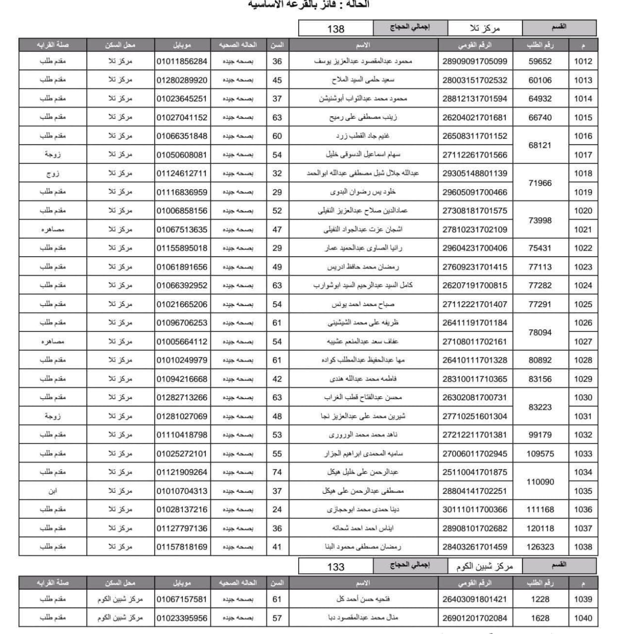 أعلنت مديرية أمن المنوفية الفائزين في قرعة الحج العلنية وذلك عقب اجراء القرعة العلنية في استاد شبين الكوم بالصالة المغطاة.