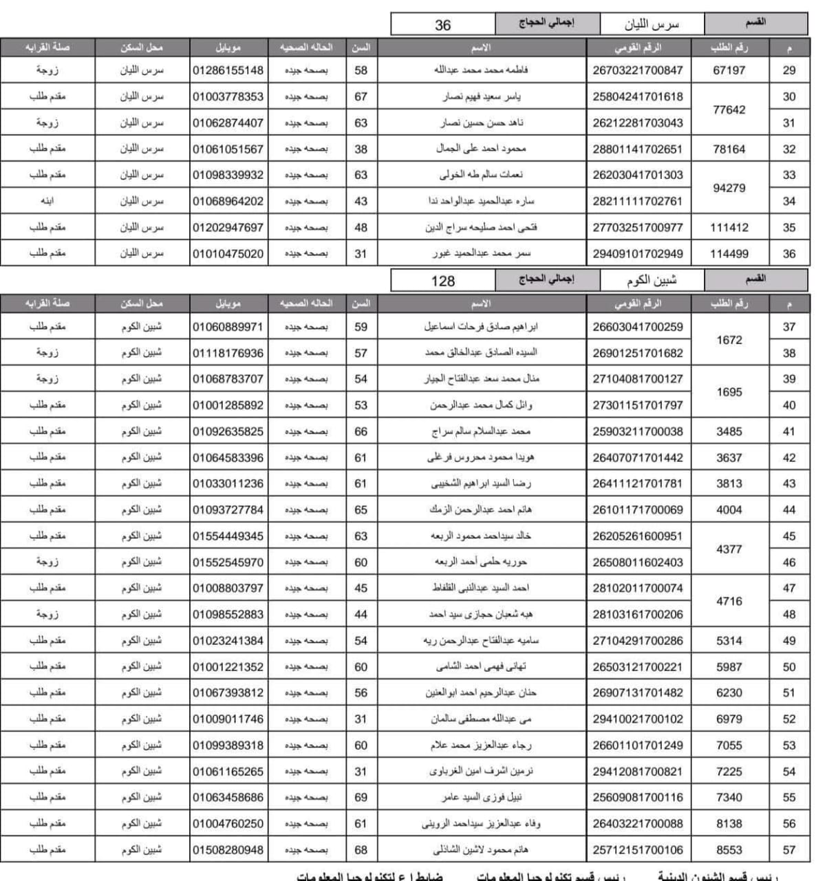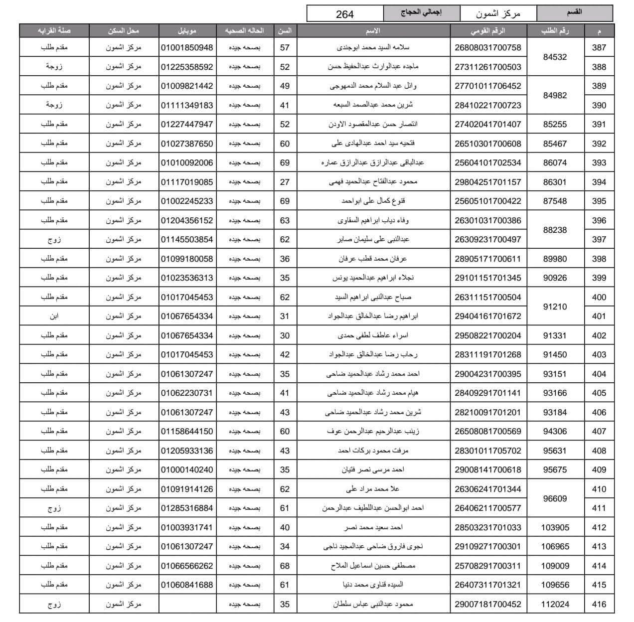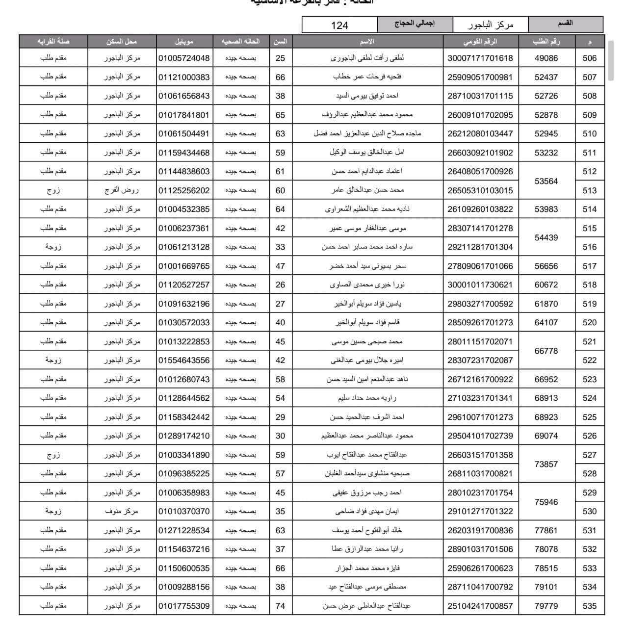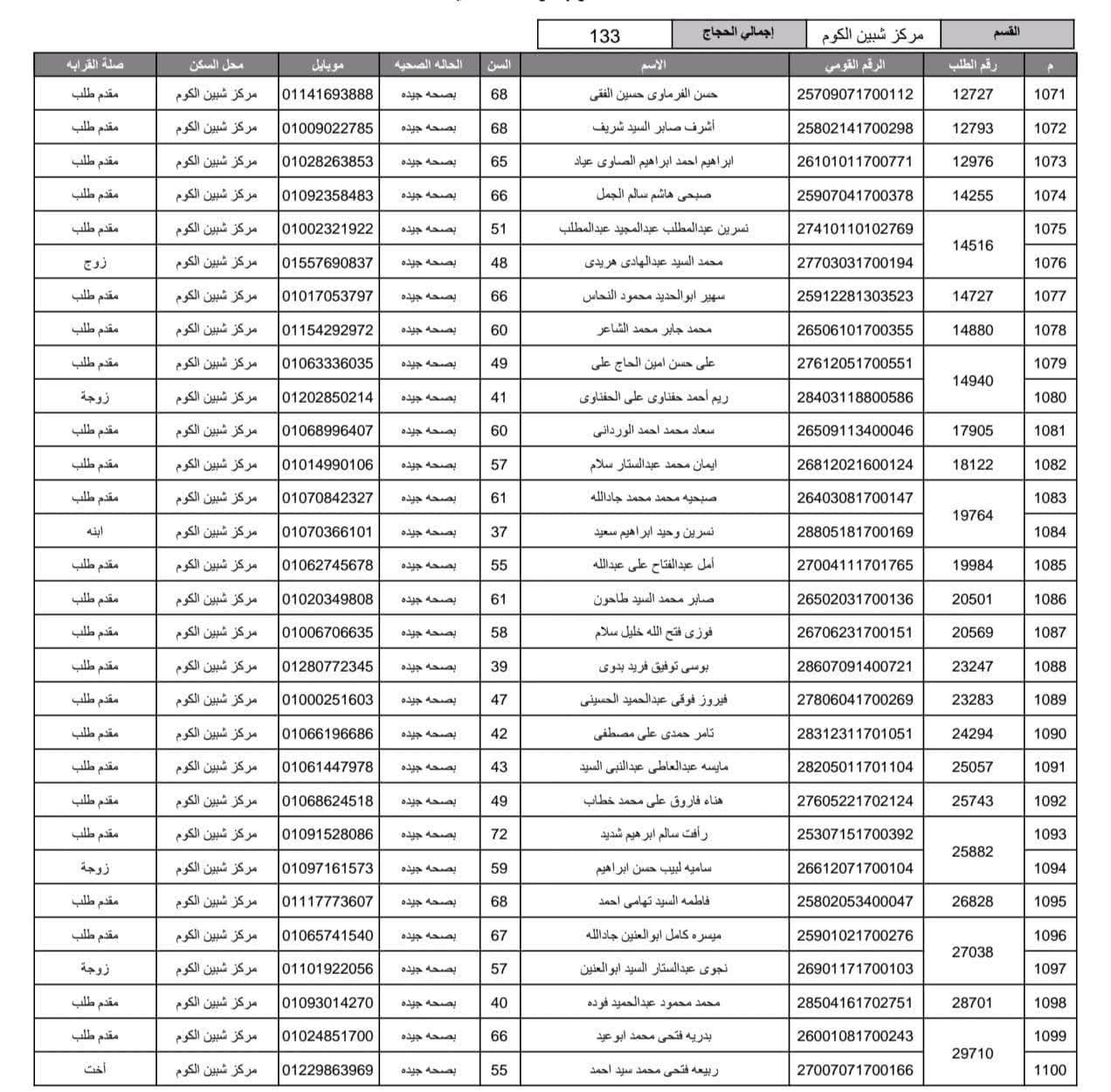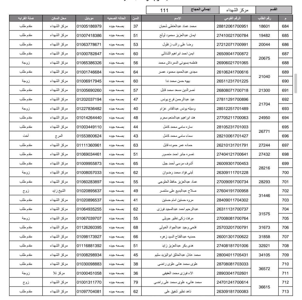 أعلنت مديرية أمن المنوفية الفائزين في قرعة الحج العلنية وذلك عقب اجراء القرعة العلنية في استاد شبين الكوم بالصالة المغطاة.