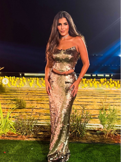خطفت زوجة ماجد المصري الأنظار في الصور بإطلالة مميزة، حيث ارتدت تصميم مميز اتسم بتوب قصير كشف عن بطنها مع جيبة طويلة واتسم بالقماش المطرز بالكامل.