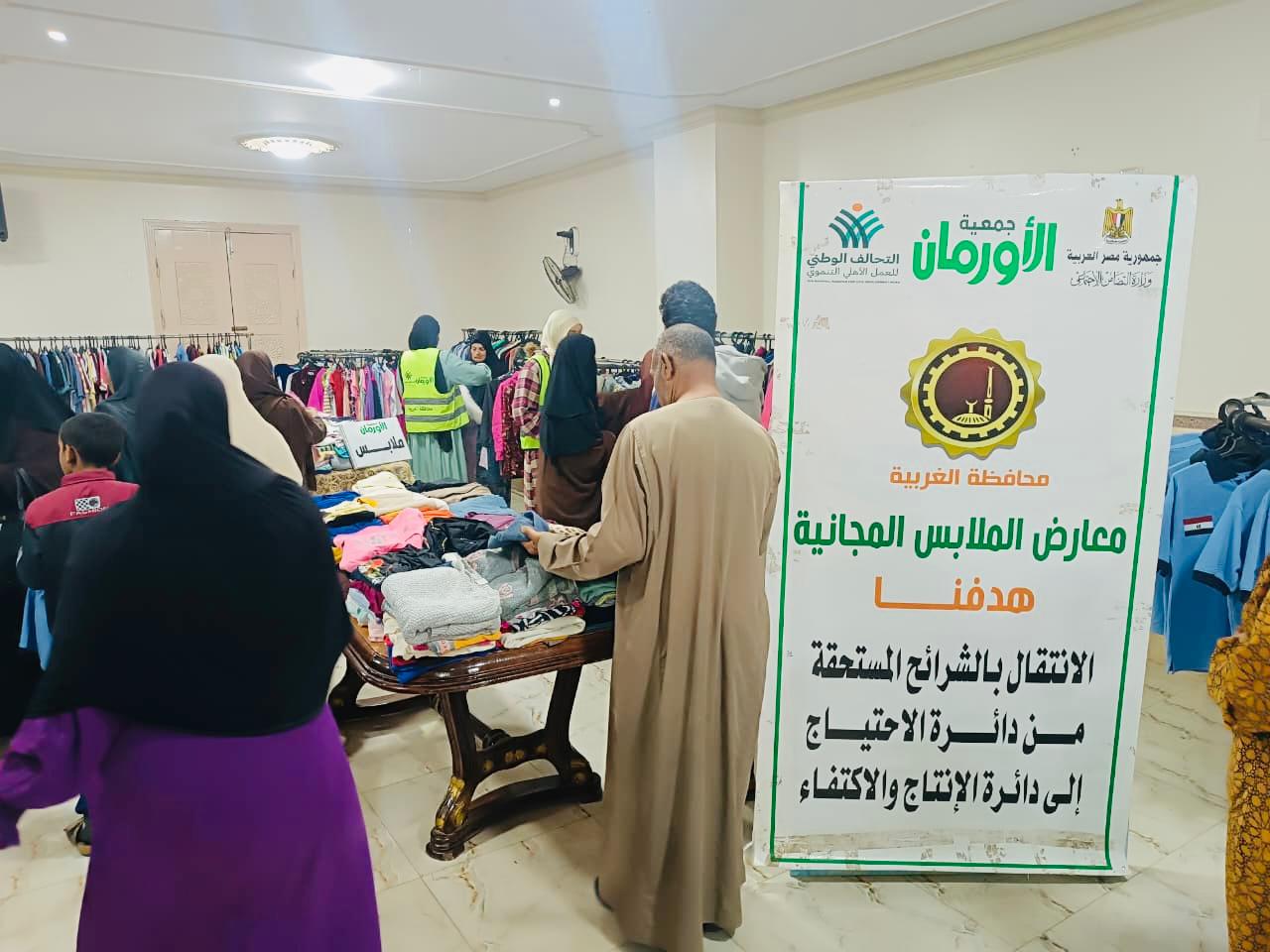 أعلنت مديرية التضامن الاجتماعى بالغربية، تنفيذ جمعية الأورمان تحت إشراف المديرية، معرض ملابس وتوزيع الملابس الجديدة بالمجان بإجمالى 2350 قطعة على 300 أسرة من الأسر الأولى بالرعاية والأيتام بقرى ابشواى ونشيل وعزبتى البكرى والجلايلة بمركز قطور، وذلك تحت رعاية اللواء أشرف الجندى محافظ الغربية.