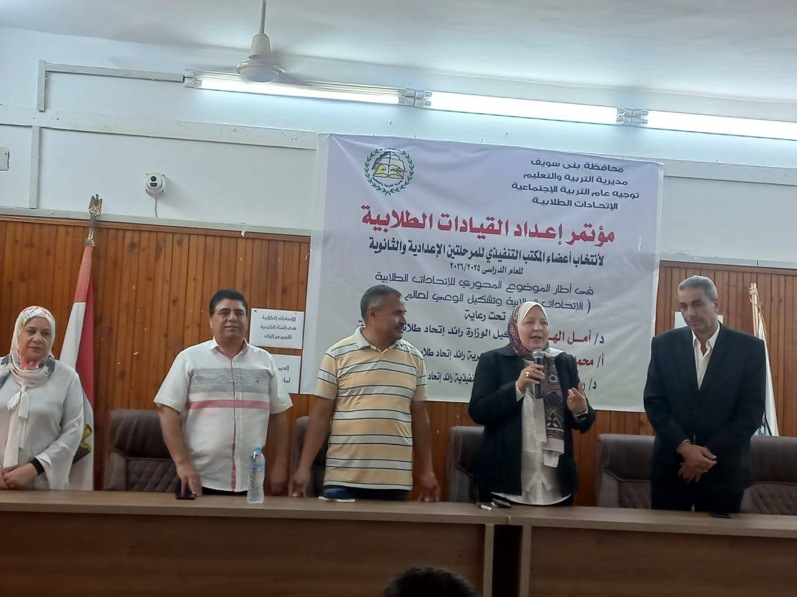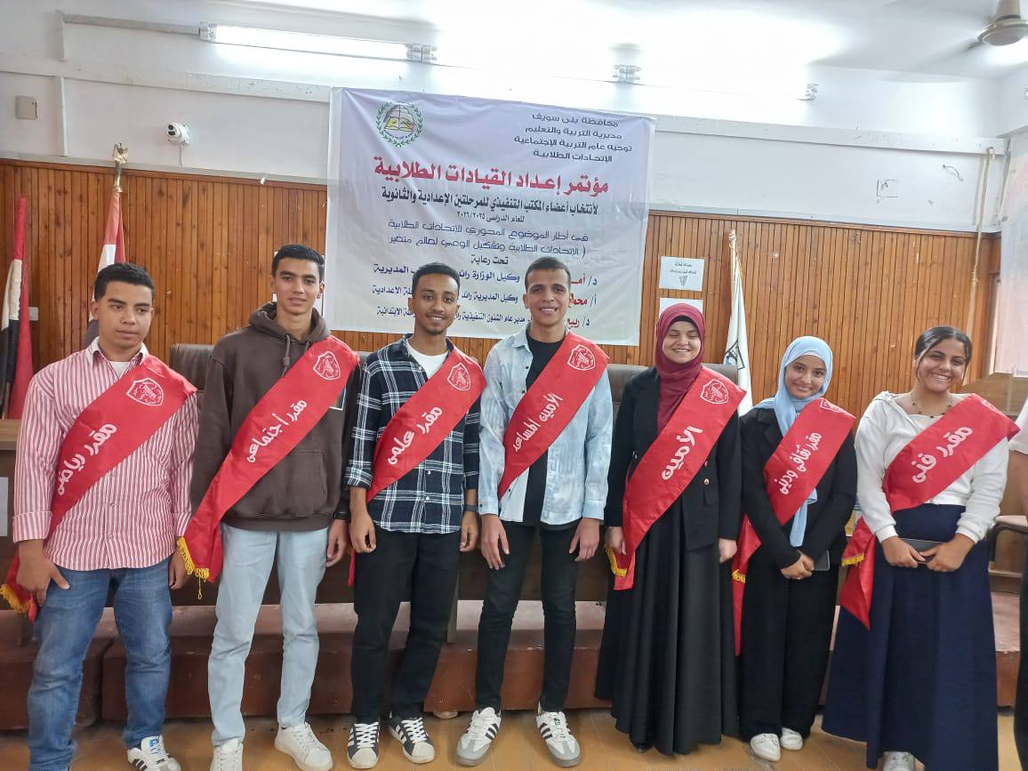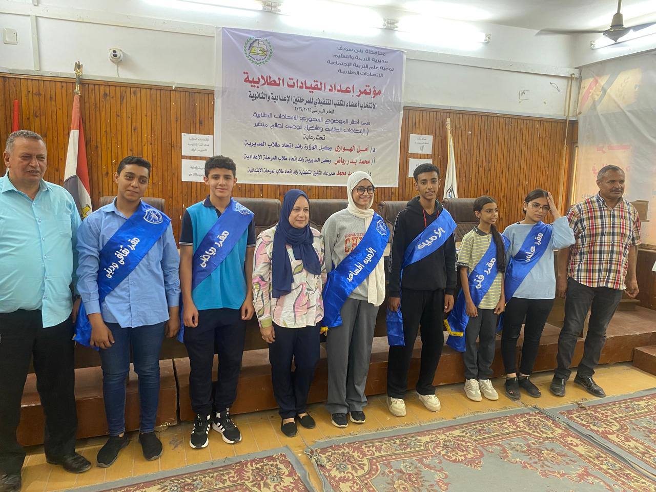 في إطار توجيهات محمد عبد اللطيف وزير التربية والتعليم والتعليم الفني وبناء على تعليمات الدكتور محمد هاني محافظ بني سويف بالعمل على إعداد القيادات الطلابية لبناء جيل قادر على الابتكار والإبداع ومواجهة التحديات أعلنت أمل الهواري وكيل وزارة التربية والتعليم ببني سويف ختام فعاليات مؤتمر إعداد القيادات الطلابية وانتخاب المكتب التنفيذي للمرحلتين الاعدادية والثانوية والتي أقيمت بقاعة نادي المعلمين الرياضي ببني سويف على مدار أربعة أيام