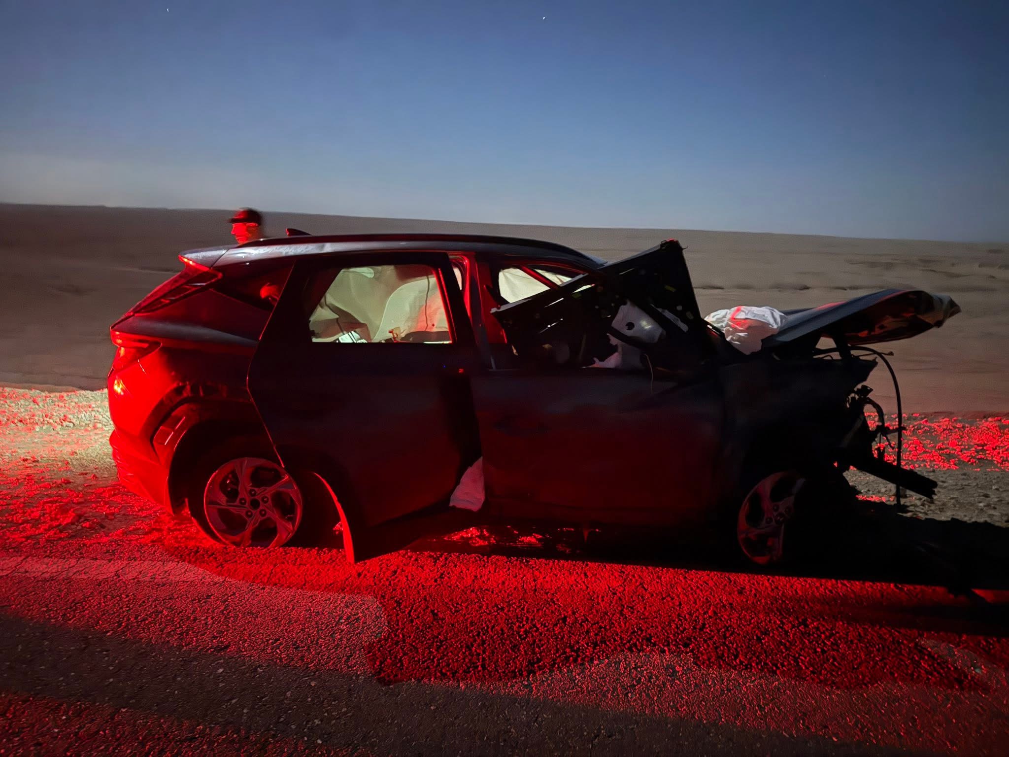 حيث تداول عدد من رواد مواقع التواصل الاجتماعي صور سيارته التي ظهرت مهشمة.