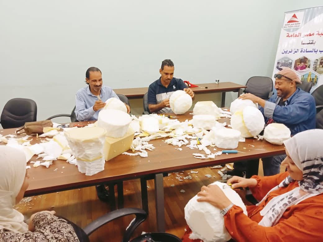 وأضاف الهوارى، وتضم الورش التدريبية مجالات فنية وتراثية وهى ورشة الإنشاد الدينى للمنشد ربيع زين، ورشة صناعة العرائس للفنان أحمدأبوطالب، ورشة الخط العربى للخطاط بهاء الدين عيسى، ورشة النحت على الخشب وتقوم بها مؤسسة ريدك ورشة الكليم تقوم بها نعيمة محمد من مؤسسة نوبت، ورشة الاكلات التراثية تقدمها ناهد رمضان من مؤسسة البيت المصرى، ورشة عزف الناى للفنان طه النبوى، بالاضافة الى ورشة الألعاب الشعبية التي تهدف إلى إحياء التراث الترفيهي المصري القديم.
