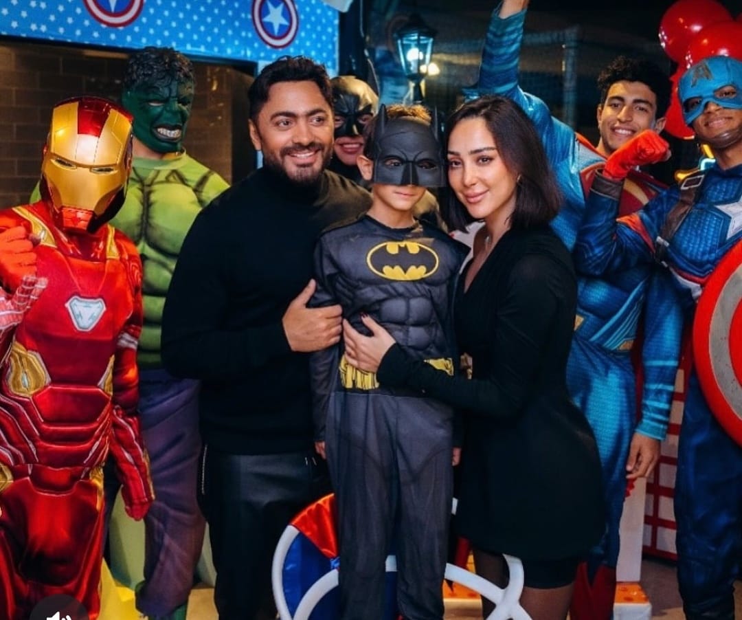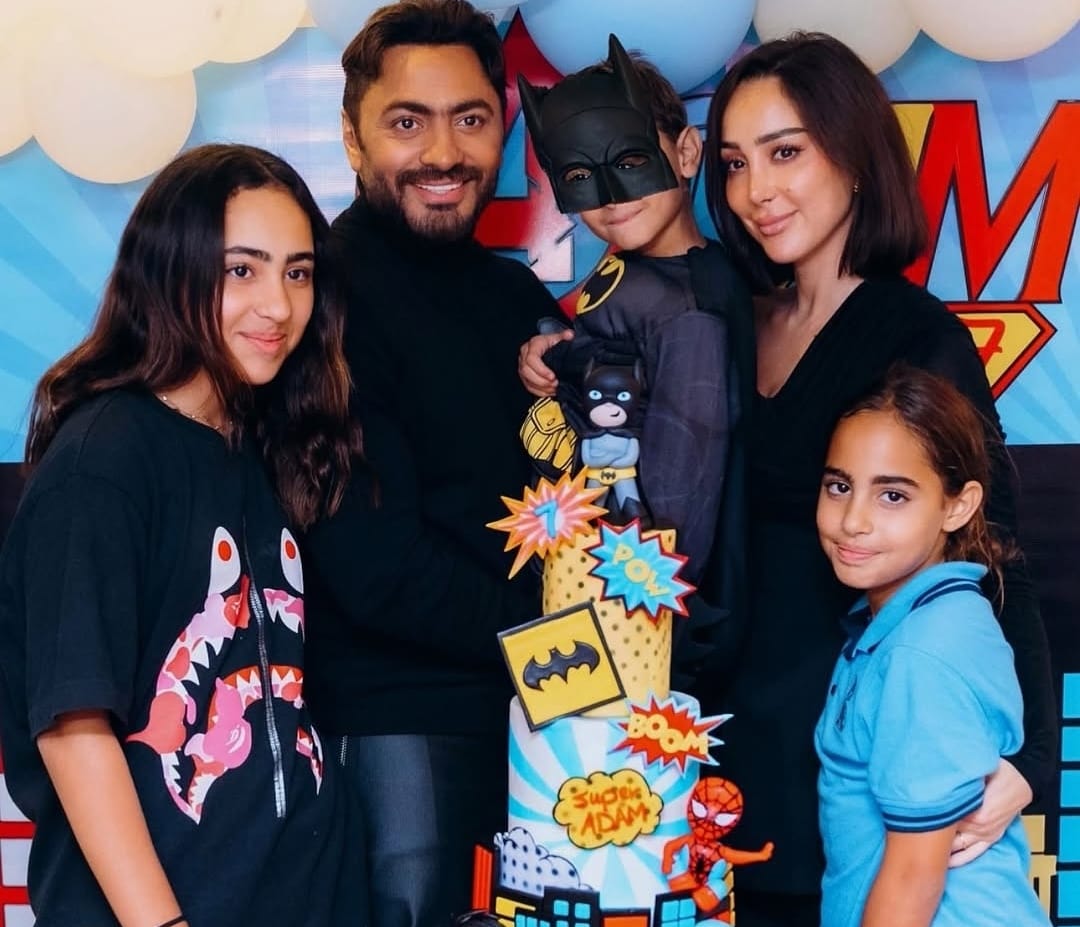 احتفل النجم تامر حسني بعيد ميلاد نجله آدم في أجواء عائلية دافئة، بحضور طليقته الفنانة المغربية بسمة بوسيل وابنتيهما تاليا وأمايا.