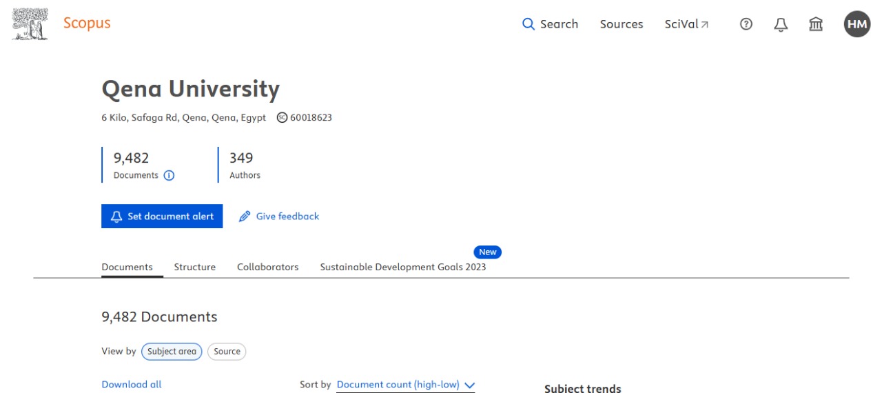 أعلن رئيس جامعة قنا، عن اعتماد قاعدة بيانات سكوبس تغيير اسم الجامعة رسميًا في قاعدة البيانات العالمية Scopus، والذى يعد من أبرز قواعد البيانات المتخصصة في فهرسة الإنتاج البحثي والأكاديمي على مستوى العالم.