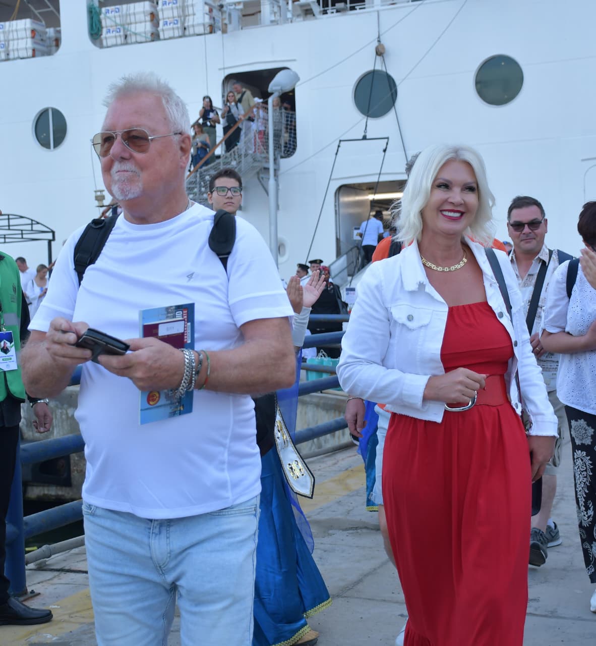 وكان في استقبال السفينة الاستاذ عبد العال عبد الباري السكرتير العام المساعد لمحافظة بورسعيد، والأستاذة سمر الموافي رئيس حي الشرق، والدكتورة علا نصر وكيل وزارة السياحة ببورسعيد، والدكتورة نجلاء عبد الكريم مدير مكتب هيئة تنشيط السياحة بالمحافظة، ومسئولي الهيئة الاقتصادية لقناة السويس والاستاذ خالد النحلة وكيل مديرية الشباب والرياضة وعدد من القيادات التنفيذية والأمنية بالميناء.