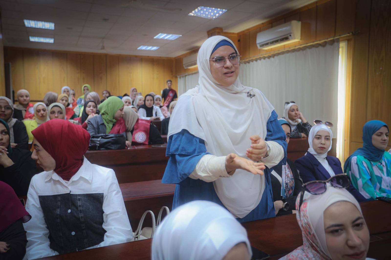 حاضر خلال الندوة د. أمل محمد عبد الستار، الأستاذ بطب طنطا والمدير التنفيذي للمركز الرئيسي للخدمات العامة المجتمعية بجامعة طنطا، ود. أميرة رسلان، عضو. هيئة التدريس بجامعة الأزهر وعضو مركز الأزهر العالمي للفتوى الإلكترونية، ود. بلال خضر، عضو مركز الأزهر العالمي للفتوى الإلكترونية، ود. إبراهيم كمال، عضو مركز الأزهر العالمي للفتوى الإلكترونية، وسط حضور واسع من أعضاء هيئة تدريس وطلاب جامعة طنطا.