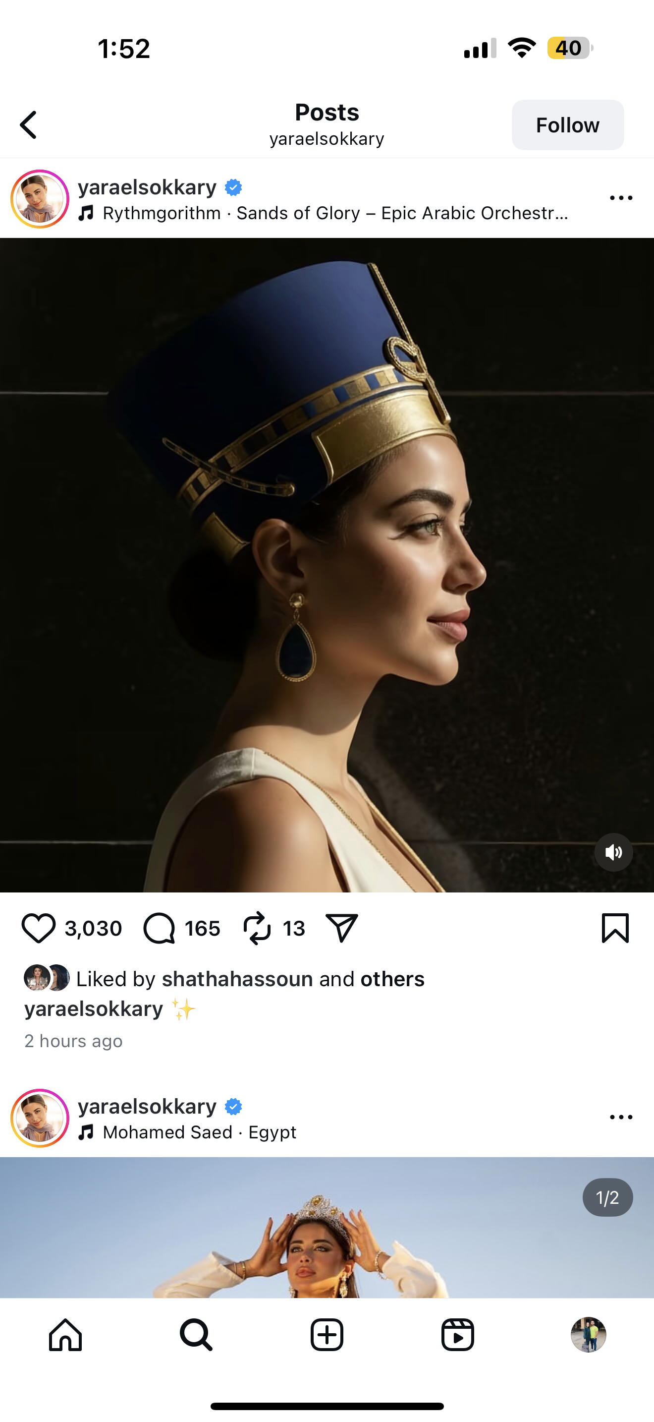 وظهرت يارا السكري ، بصورة جديدة ظهرت فيها على طريقة المصريين القدماء، وتحديداً الملكة نفرتيتي بوجود قناع عليها باللون الأزرق .