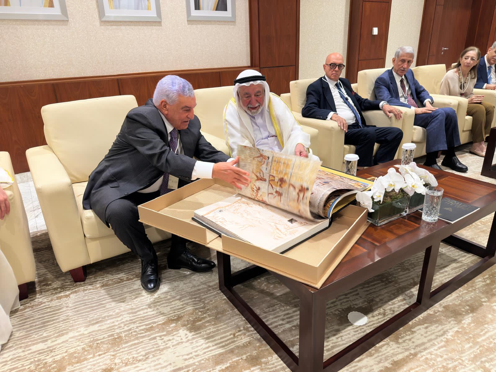 وشهد اللقاء، الذي يأتي احتفالًا بالثقافة والمعرفة، تقدم الدكتور زاهي حواس، هدية استثنائية لحاكم الشارقة، وهي "أعظم كتاب كُتب عن الآثار المصرية"، الذي أطلق عليه الدكتور حواس لقب "زعامة العلماء رقم واحد".