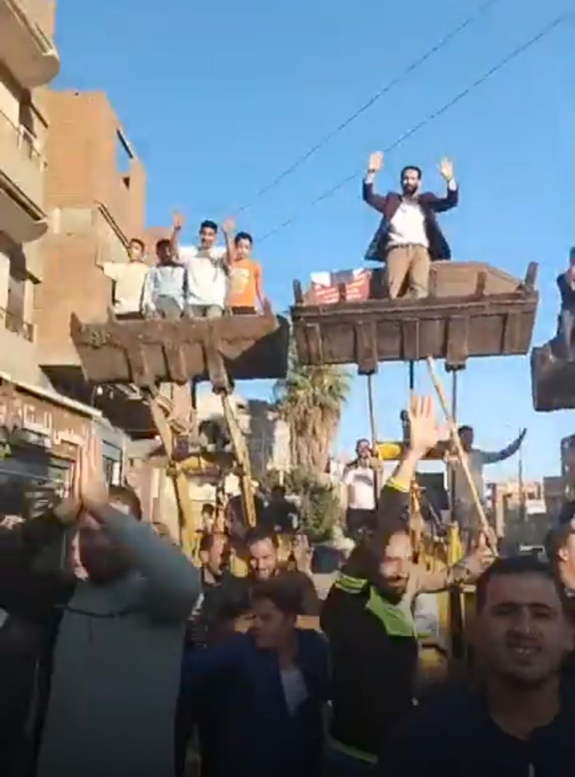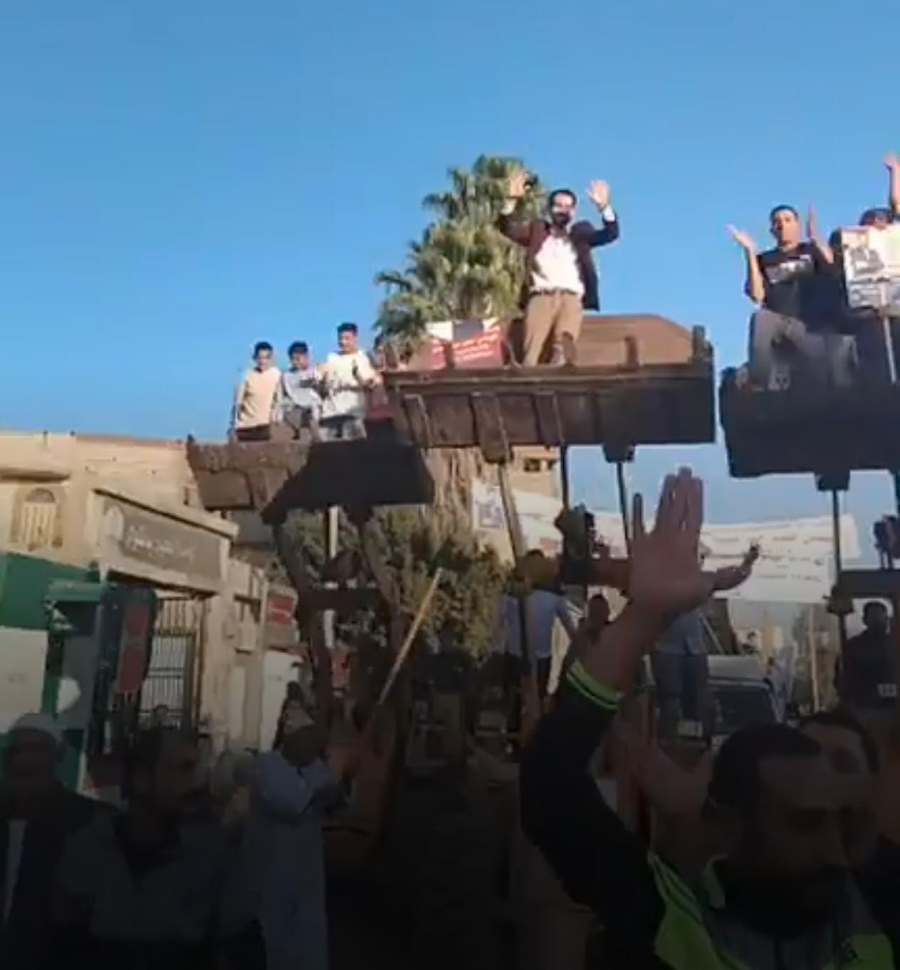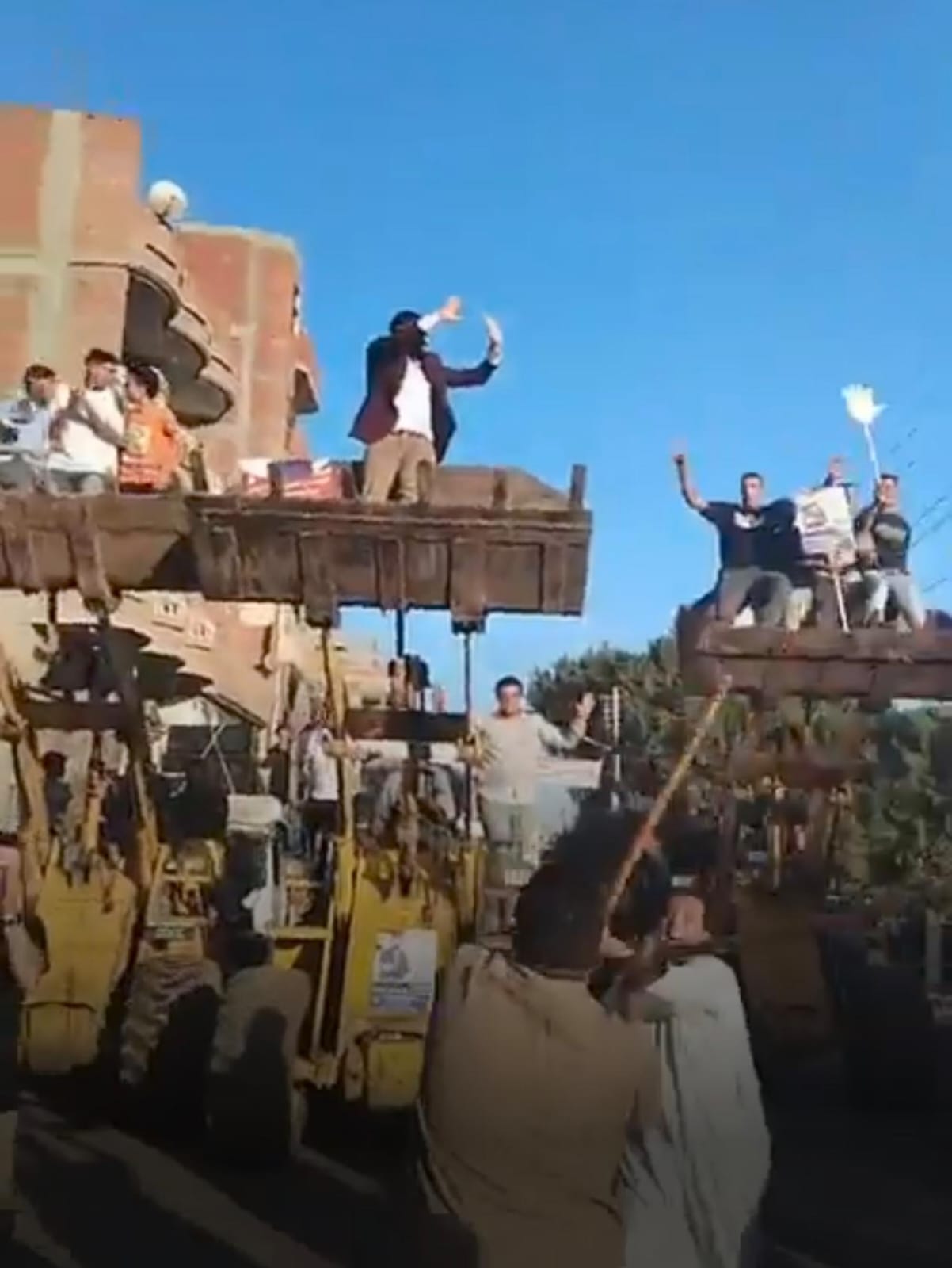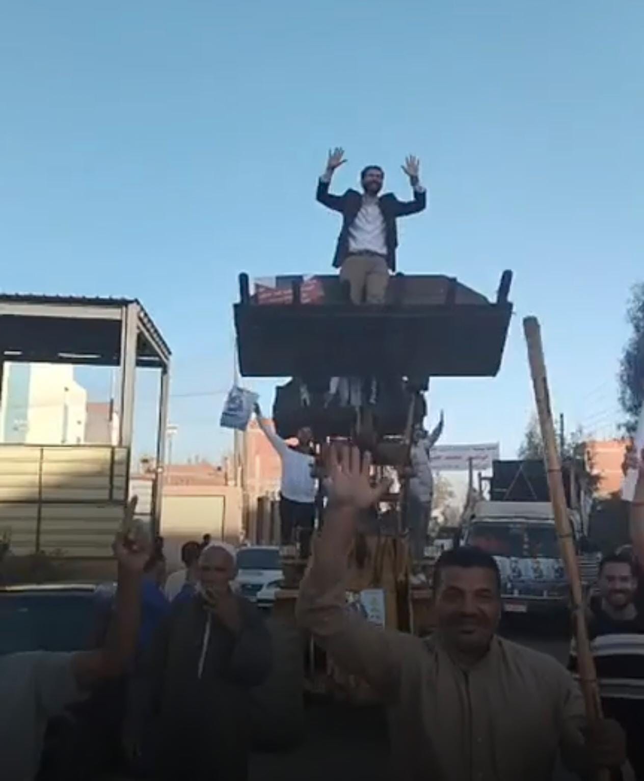 نظم أحد المرشحين بدائرة تلا - الشهداء في محافظة المنوفية مسيرة باللوادر داخل قرية دنشواي بمركز الشهداء.