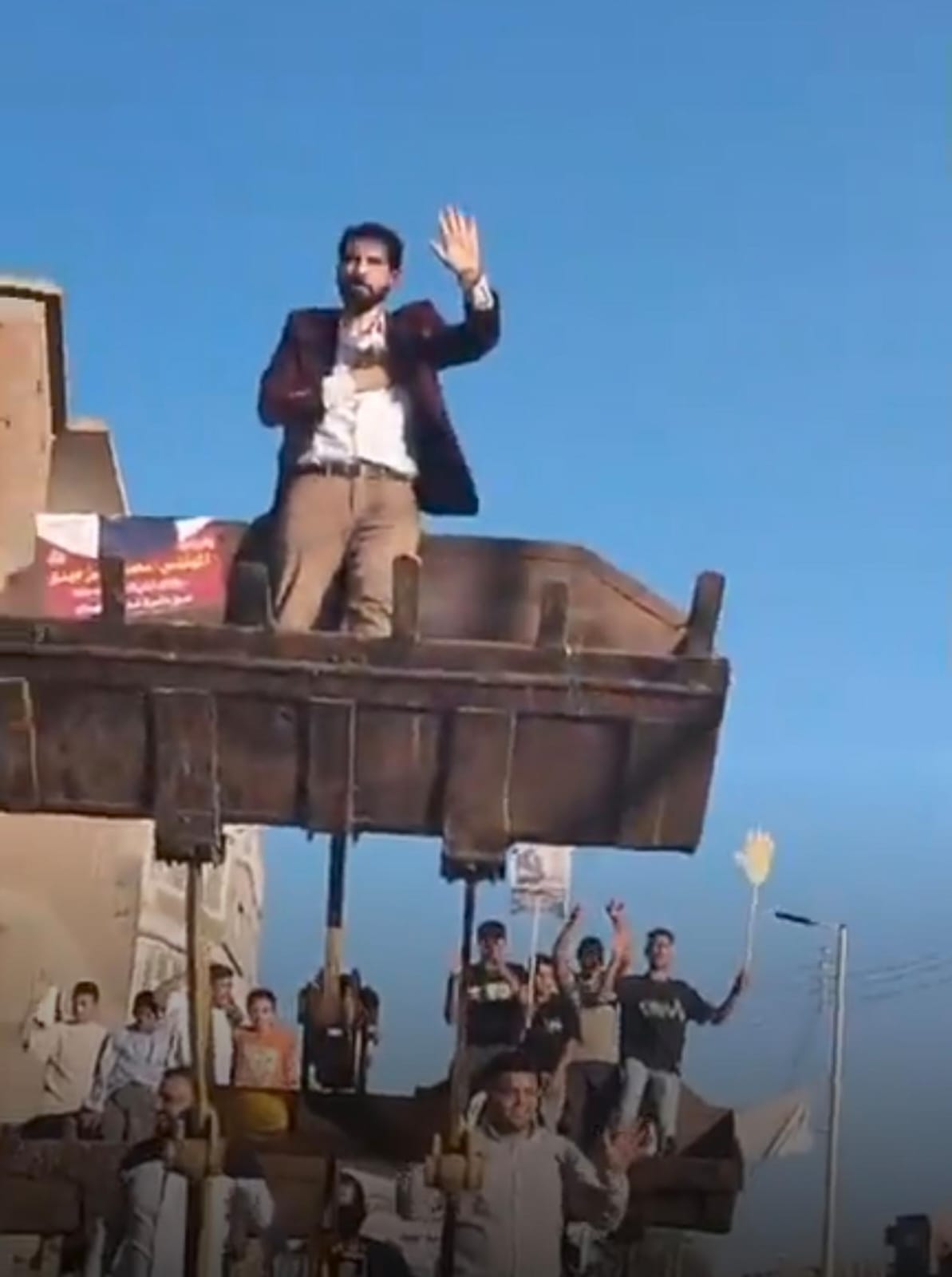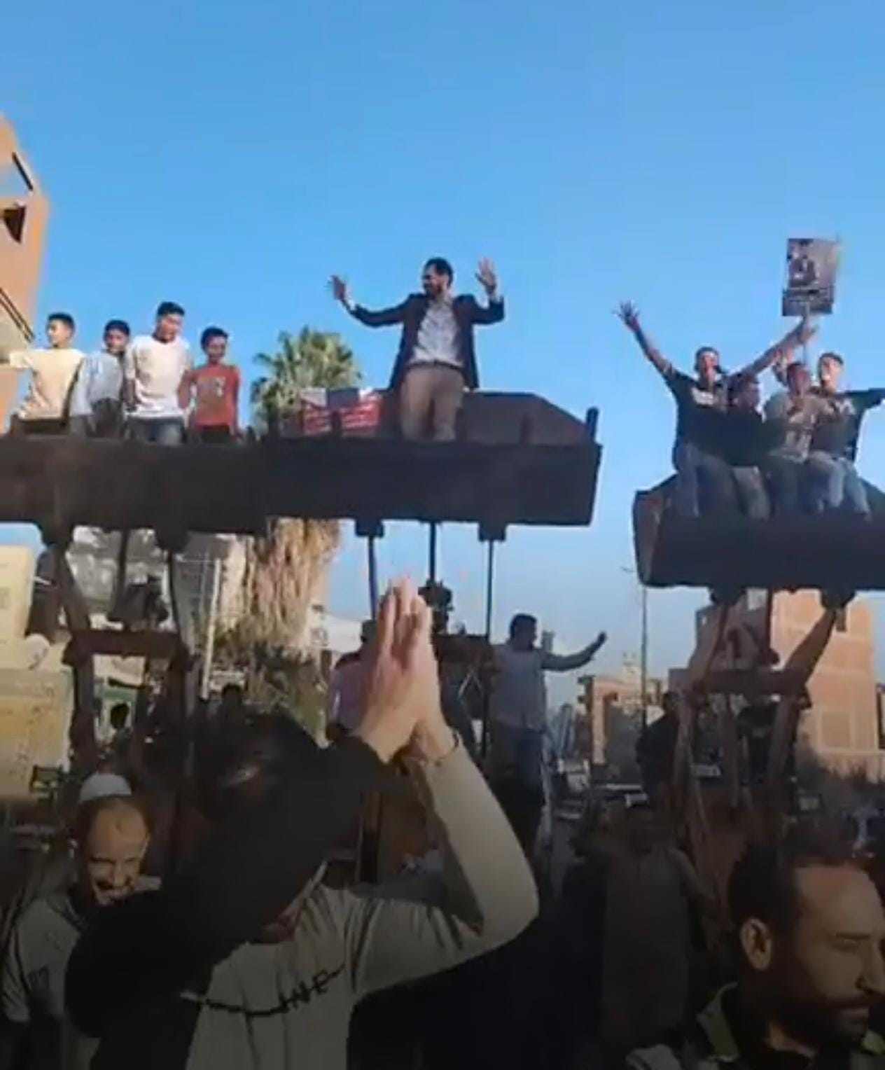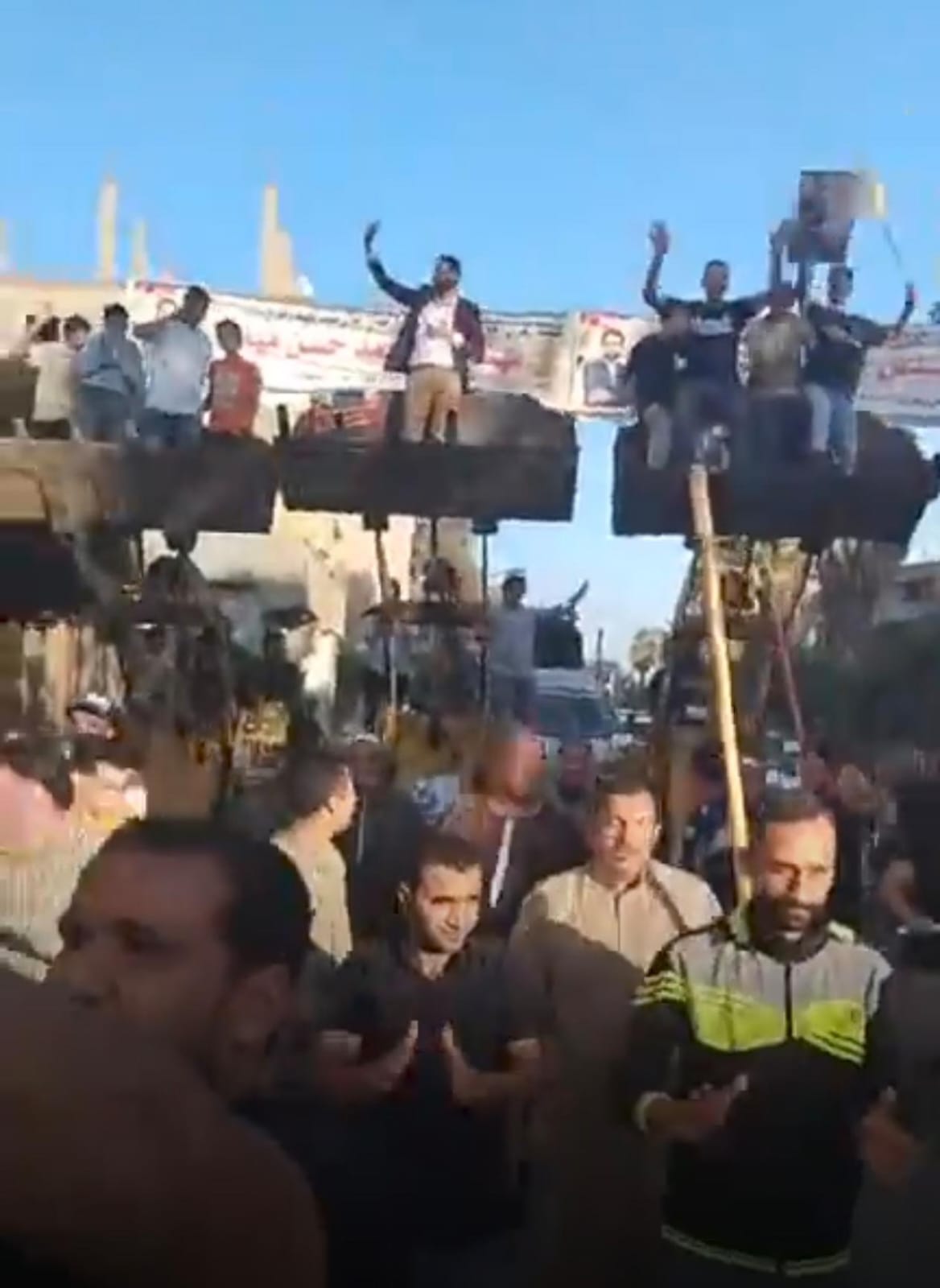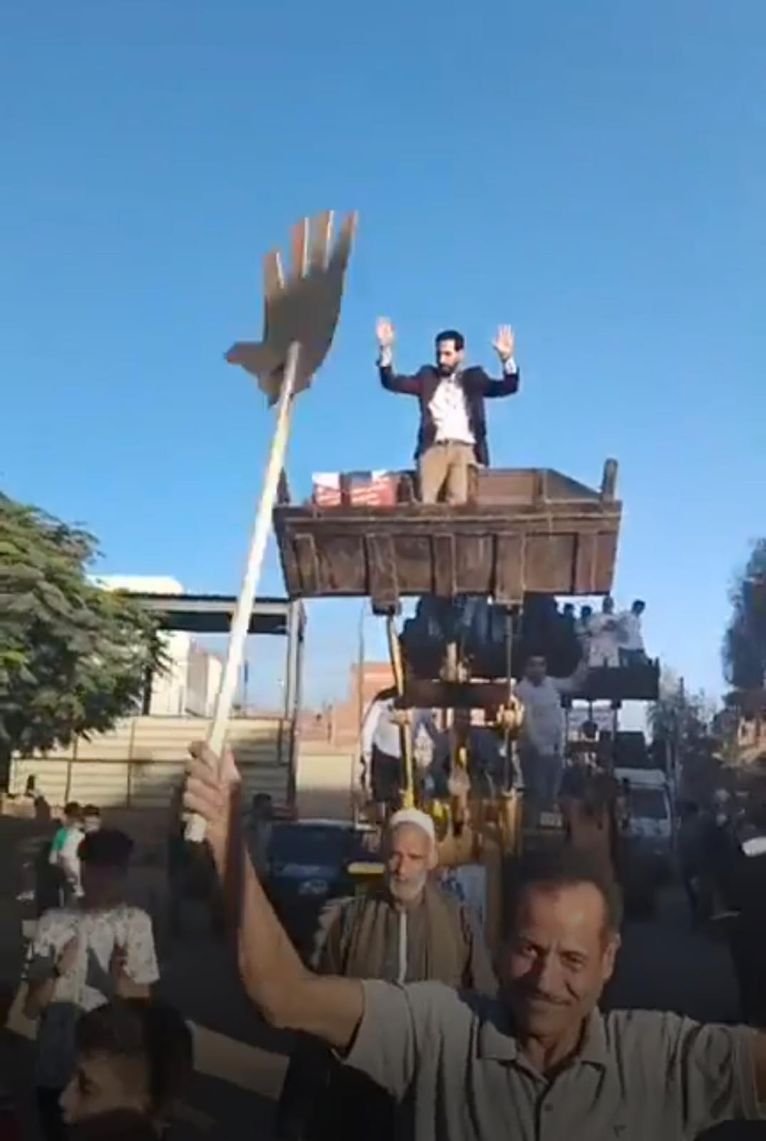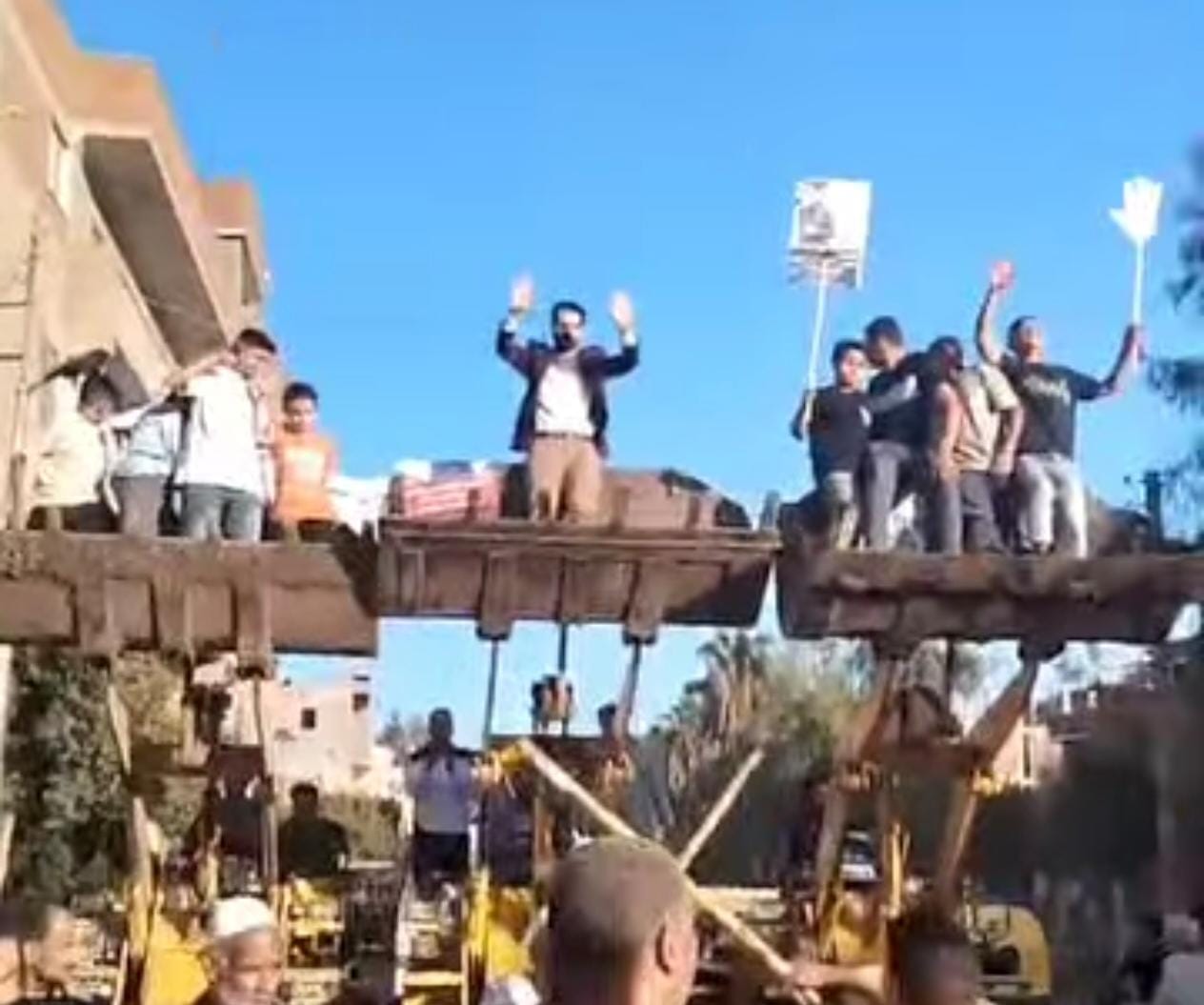نظم أحد المرشحين بدائرة تلا - الشهداء في محافظة المنوفية مسيرة باللوادر داخل قرية دنشواي بمركز الشهداء.