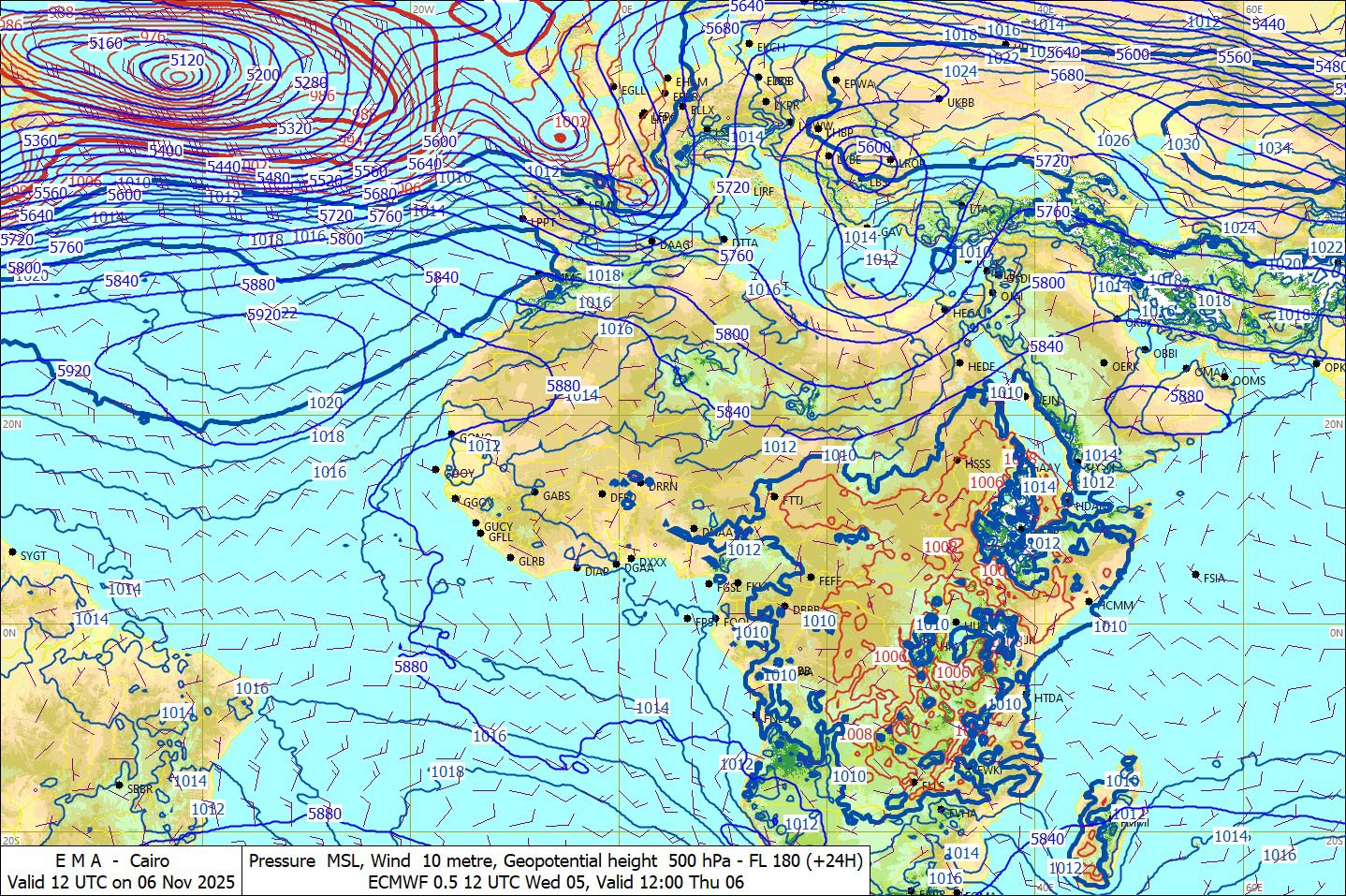 فيما تظهر بعض السحب المنخفضة خلال الطقس غدا، على مناطق من شمال البلاد حتى القاهرة الكبرى، وقد ينتج عنها سقوط رذاذ خفيف غير مؤثر على الأنشطة اليومية في بعض المناطق.