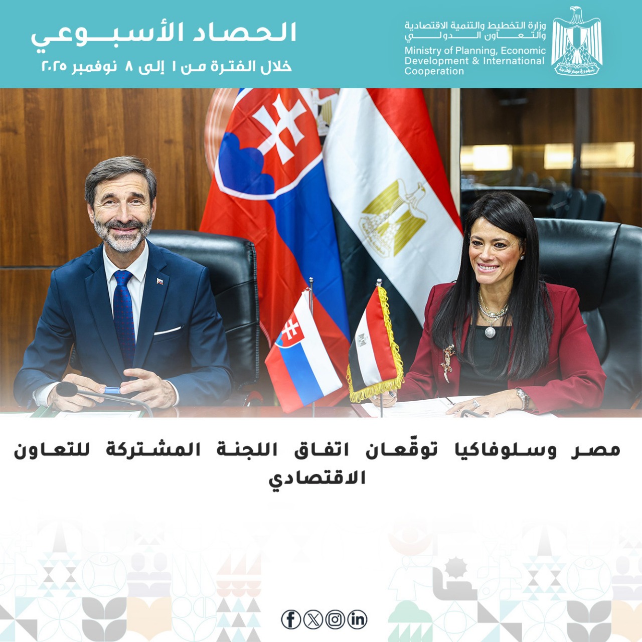 وخلال فعاليات الأسبوع وقّعت الدكتورة رانيا المشاط، مع وزير الخارجية والشئون الأوروبية بجمهورية سلوفاكيا، اتفاق تشكيل اللجنة المشتركة للتعاون الاقتصادي بين البلدين.