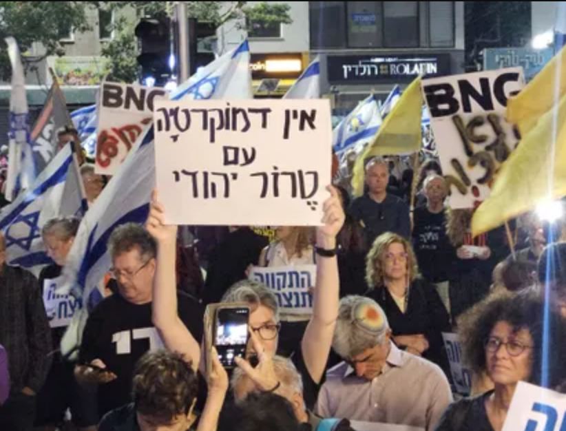 وأعلن منظمو الاحتجاج أن "الشعب يعود إلى الشوارع لإنهاء حكومة الخراب"، واتهموا الحكومة بمحاولة "القضاء التام على دولة إسرائيل اليهودية-الديمقراطية".
