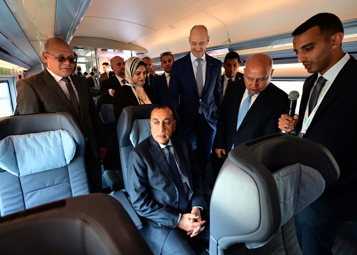 وذلك خلال تفقد رئيس مجلس الوزراء، والفريق مهندس/ كامل الوزير، نائب رئيس الوزراء للتنمية الصناعية، وزير الصناعة والنقل، للقطار "فيلارو" ، المعروض في الساحة الخارجية للمعرض والمؤتمر الدولي للنقل الذكي ضمن تفقد عدد من وسائل النقل المختلفة
