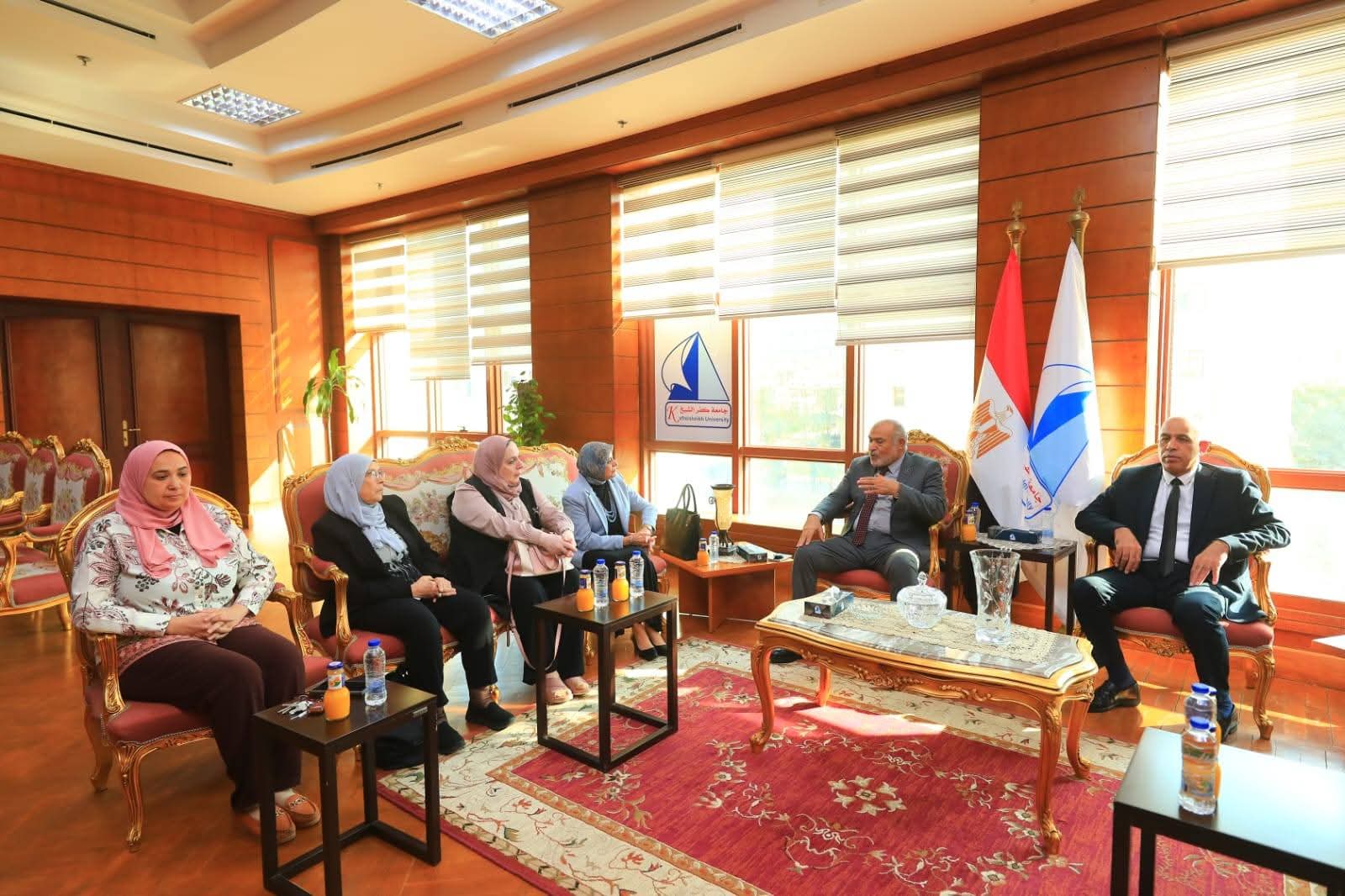 كان في استقبال اللجنة، الدكتور علي صبري أمين عام الجامعة، والدكتور محمد ابو والي مدير مركز ضمان الجودة بالجامعة، والدكتور إيناس الجندي عميد كلية طب الفم والاسنان بالجامعة.