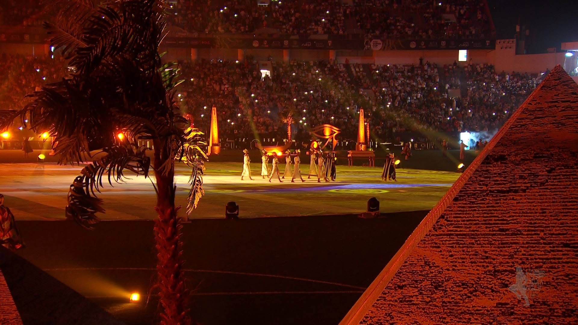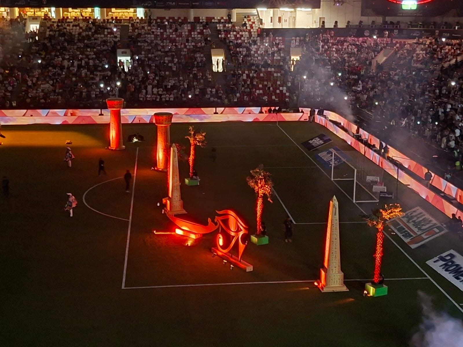 وكتب شوبير :"ستاد محمد بن زايد يتألق بلمسات فرعونية .. الأهرامات والمسلات المصرية تزين أجواء السوبر قبل مواجهة الأهلي والزمالك ".