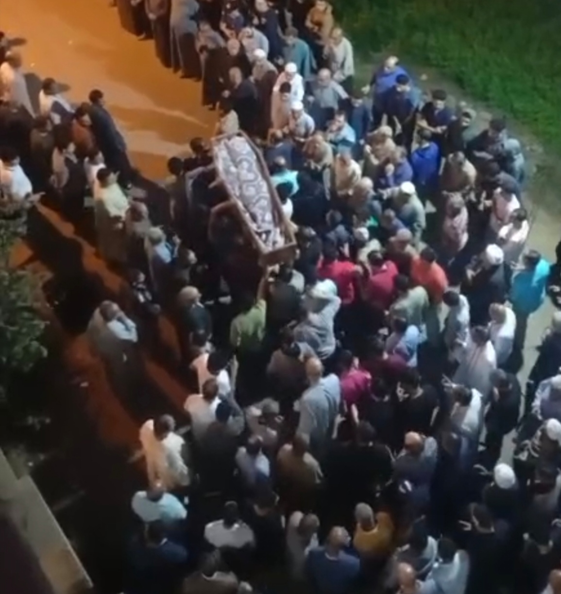 شيع العشرات من اهالي قرية كفر جنزور التابعة لمركز تلا في محافظة المنوفية جثمان السيدة اية نصر ورضيعها عقب مقتلهم علي يد زوجها.