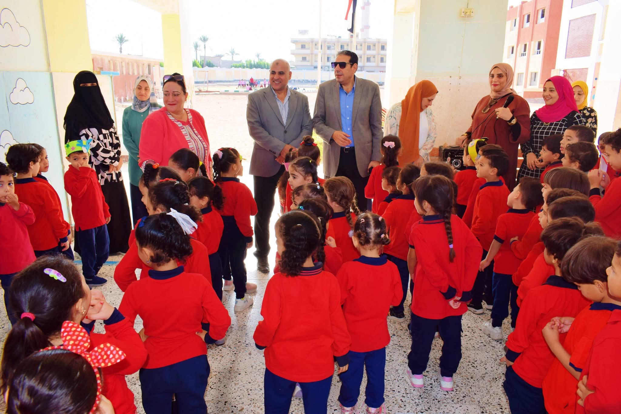 ثم تفقد عدداً من الفصول الدراسية، وشاهد طابور رياض الأطفال، مشيداً بمدرسات رياض الأطفال في المدرسة.