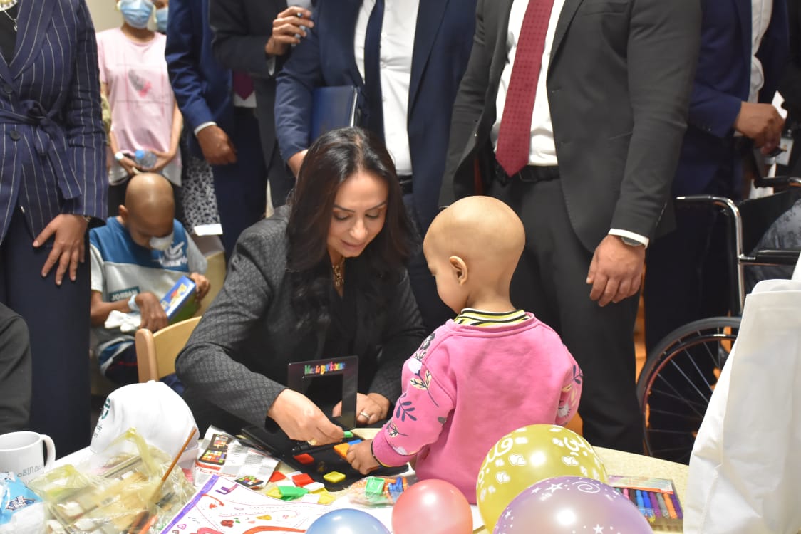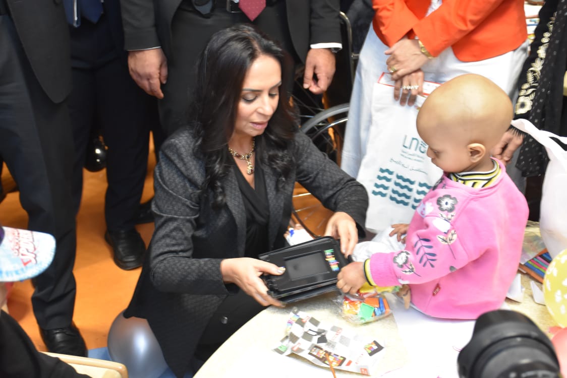 وفي لفتة إنسانية مؤثرة، حرصت الدكتورة مايا مرسي على لقاء الأطفال المرضى داخل قسم علاج أورام الأطفال، وقالت لأحدهم:
