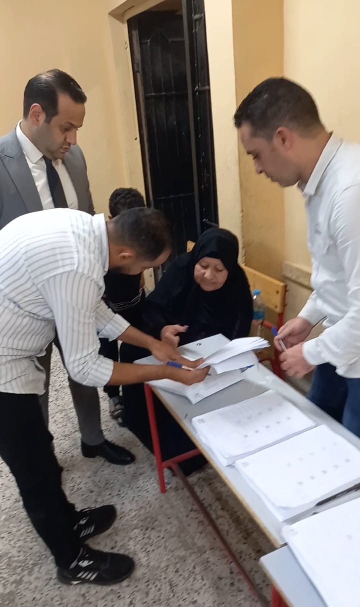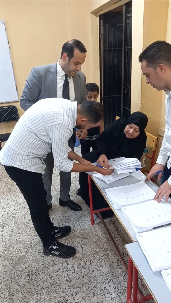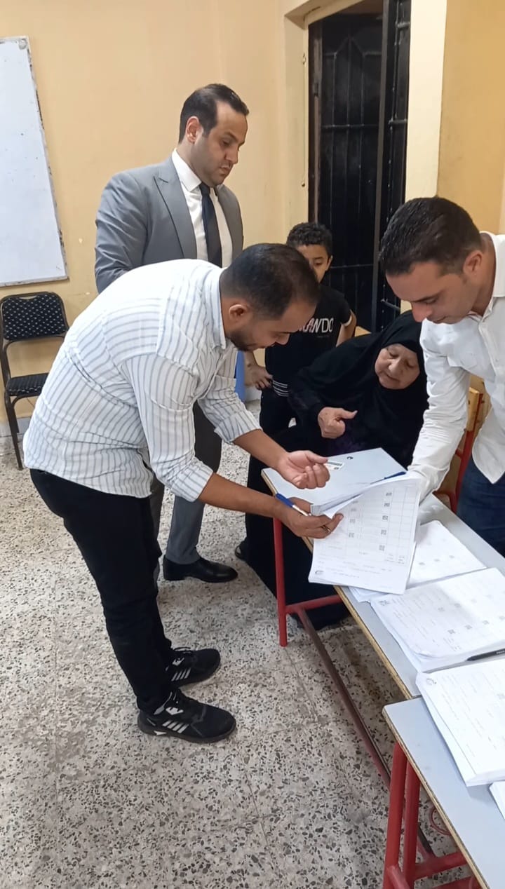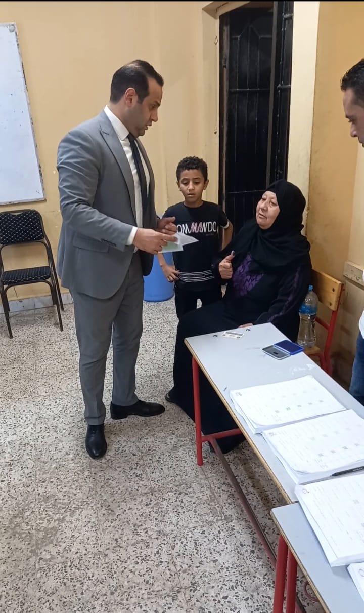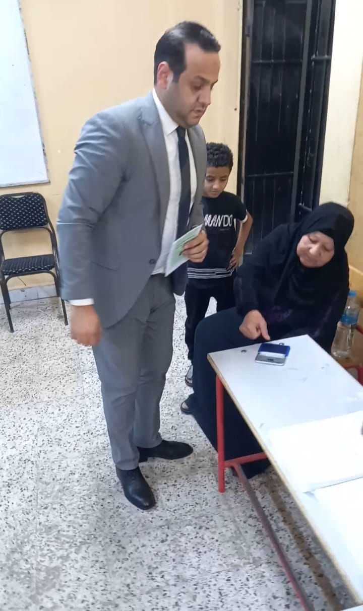 حيث قام المستشار إيهاب المهدي بمساعدة ناخبة مسنة على كيفية الإدلاء بصوتها في انتخابات مجلس النواب.