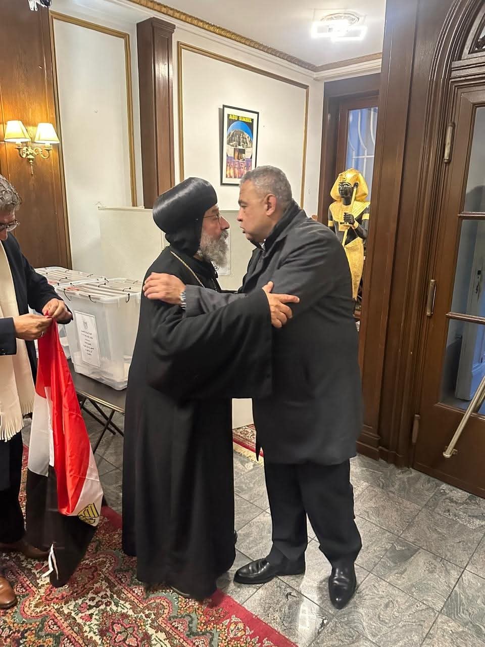 أدلى نيافة الأنبا ديسقوروس أسقف جنوبي ألمانيا ورئيس دير القديس الأنبا أنطونيوس بكريفلباخ بصوته في الانتخابات بمقر القنصلية المصرية في فرانكفورت.