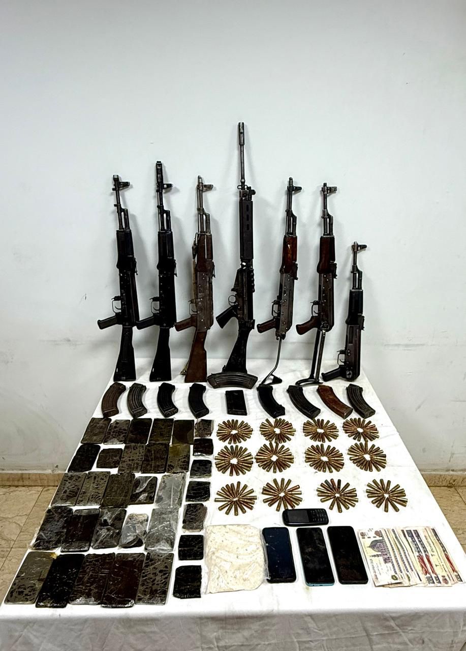 7 بنادق آلية – كمية من الطلقات مختلفة الأعيرة).
